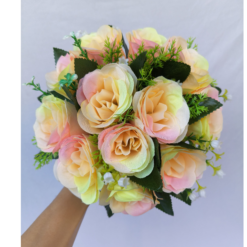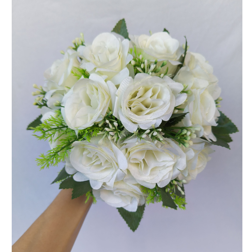 Buquê de Noiva Casamentos Civil ou Religioso feito de flores artificiais com cores Branco, Creme para casamentos