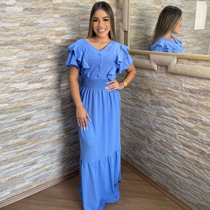 Vestido moda feminina tecido Duna Air Flow Forrado E Botão