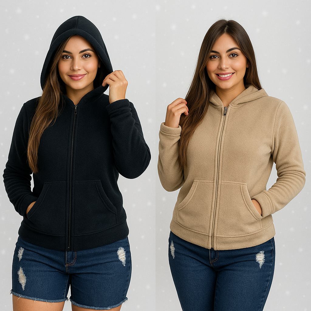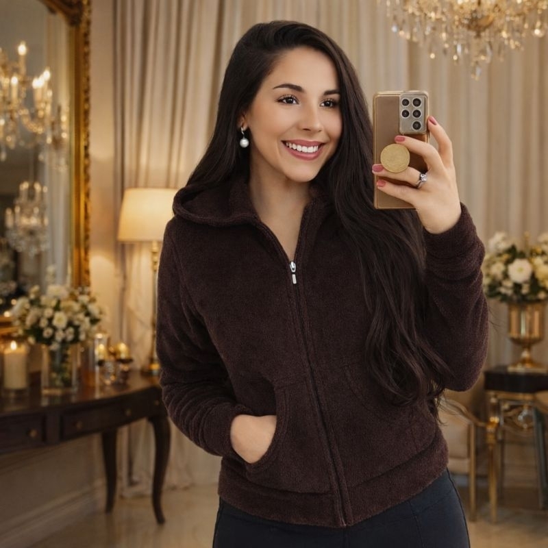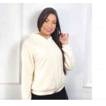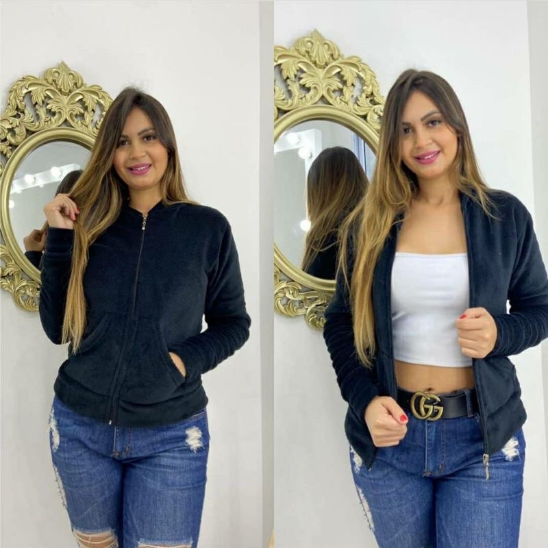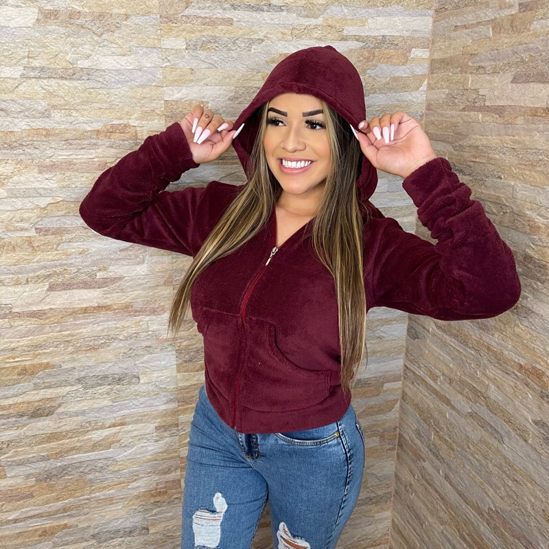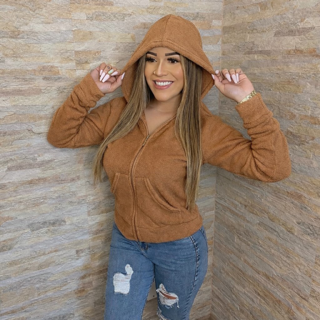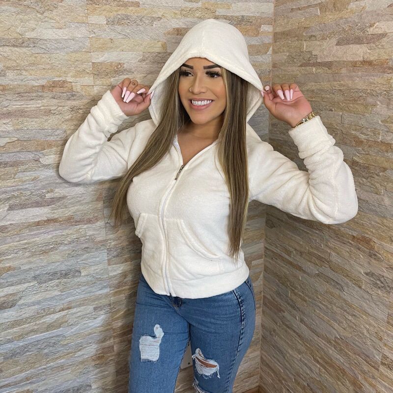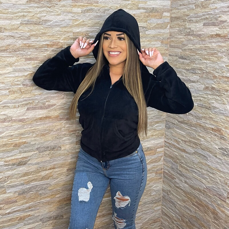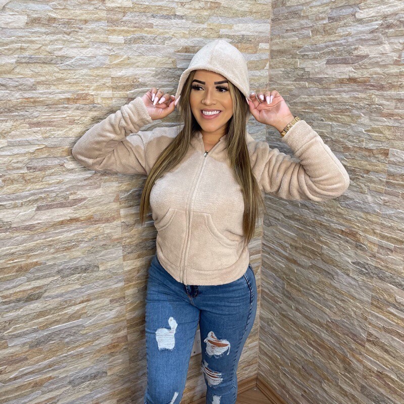 Casaco Feminino Blusa com Zíper e Capuz de Pelinhos felpuda ultra soft