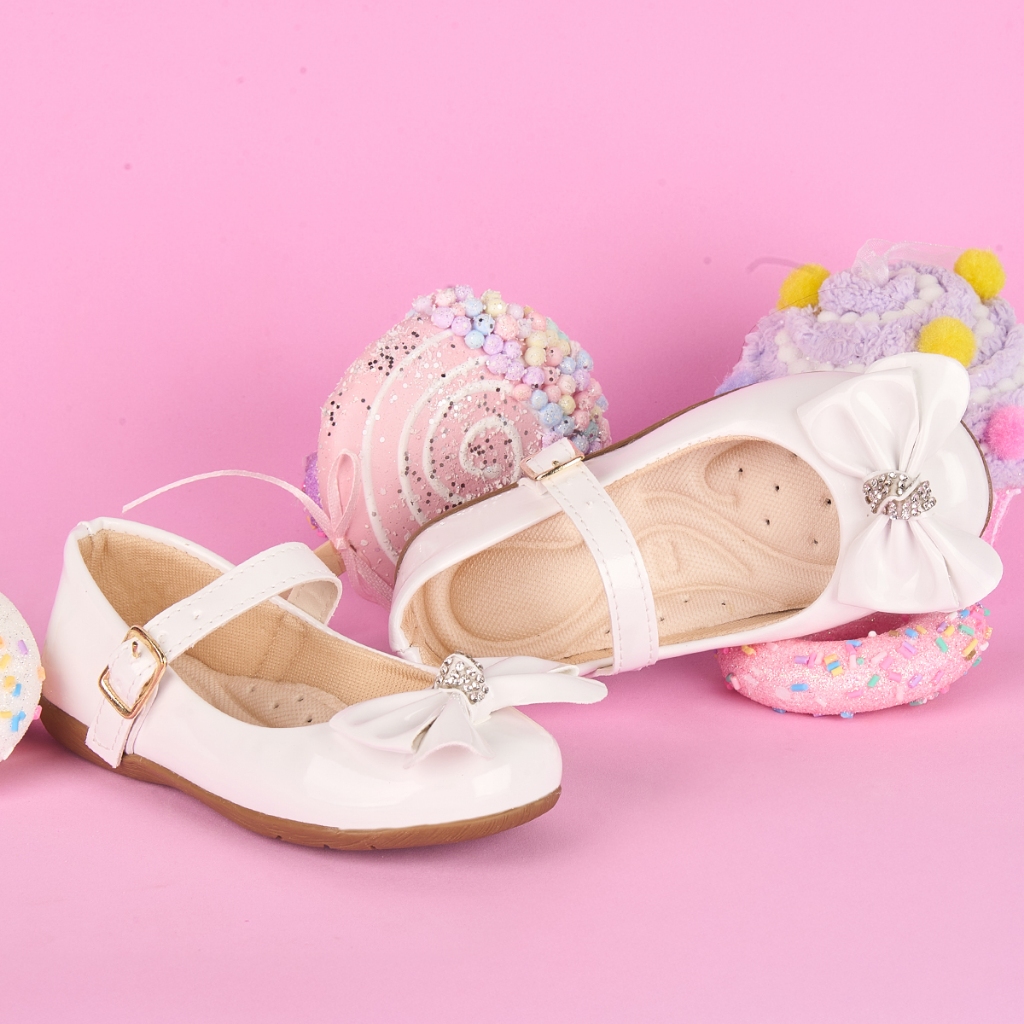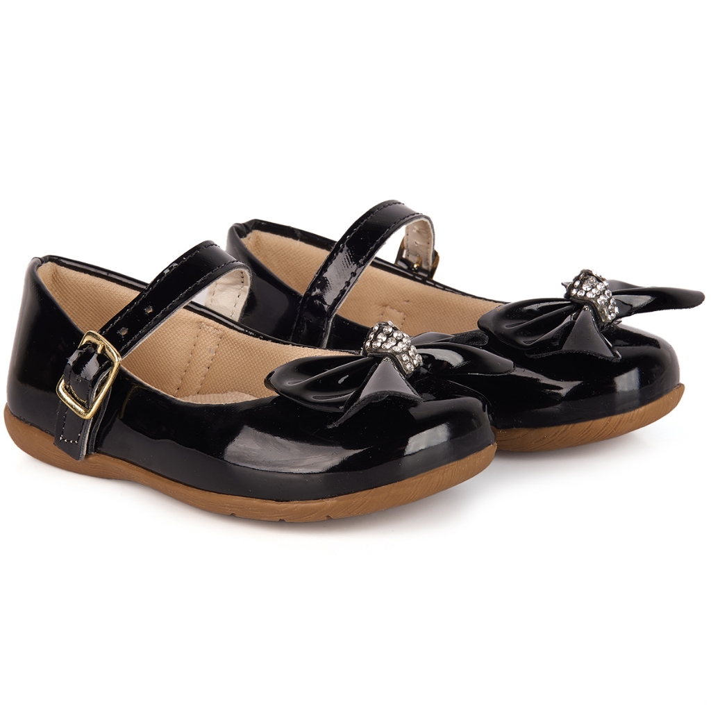 Sapatilha Infantil Menina Verniz e Fosca com Laço e Strass Fivela Festa Conforto Elegante Daminha Casual