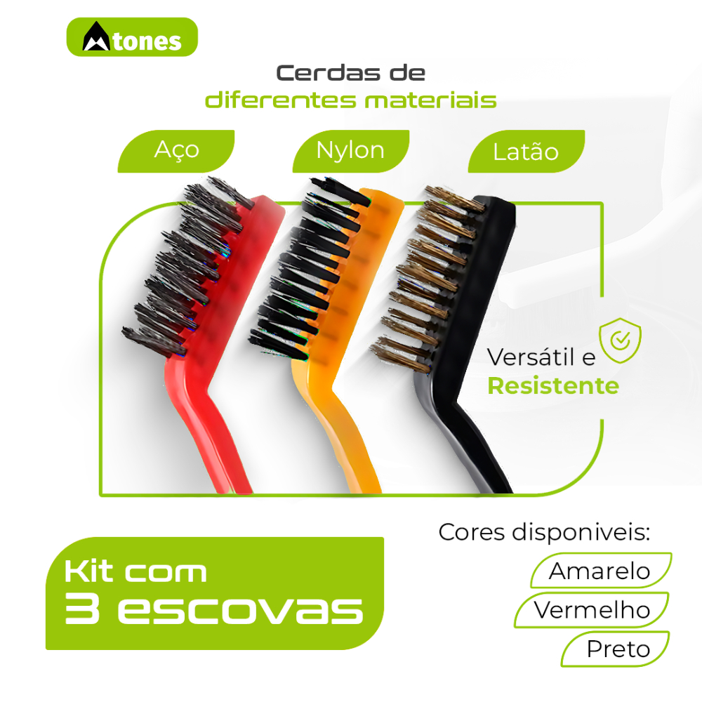 Kit Escova Aço Cobre Nylon Escovinha Multiuso Para Limpeza Profissional