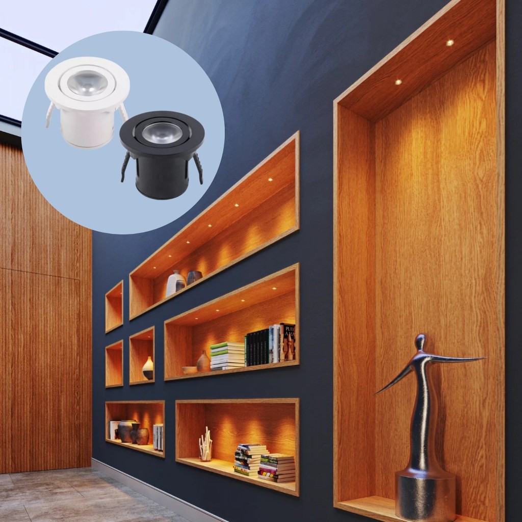 Spot Mini de LED Embutir 1w 3000K Quente Redondo ou Quadrado Preto Branco Bivolt Para Sala Móveis