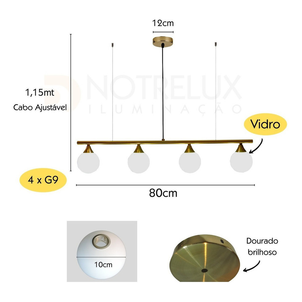 Lustre Dourado Pendente Moderno Jabuticaba