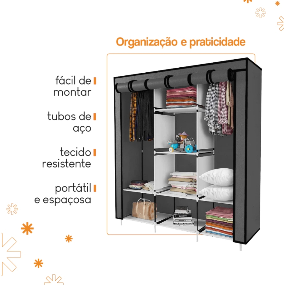 Roupeiro Desmontável Guarda Roupa Dobrável Organizador De Roupas Portátil Multiuso