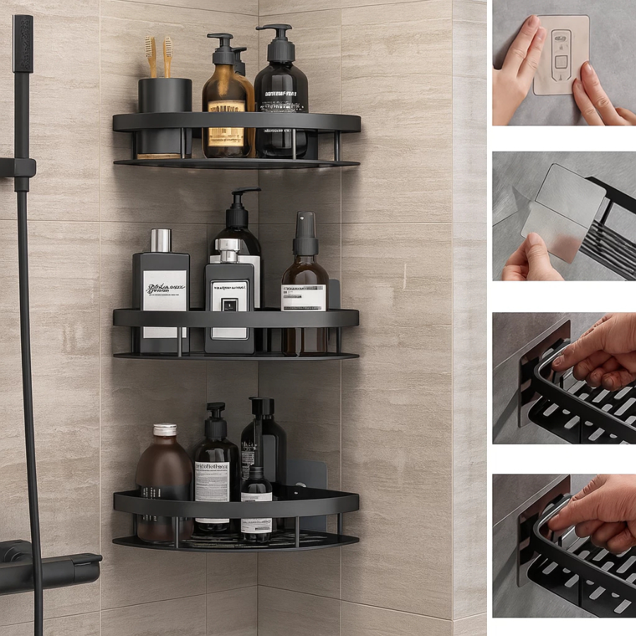 Prateleira de Parede Adesiva Alta Resistência para Organização de Shampoo no Banheiro e Cozinha