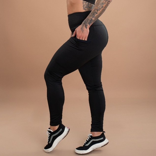 Calça Peluciada Feminina Com Bolso Legging Cintura Alta Térmica Flanelada Lisa Inverno Academia Moda Casual DRB Modas