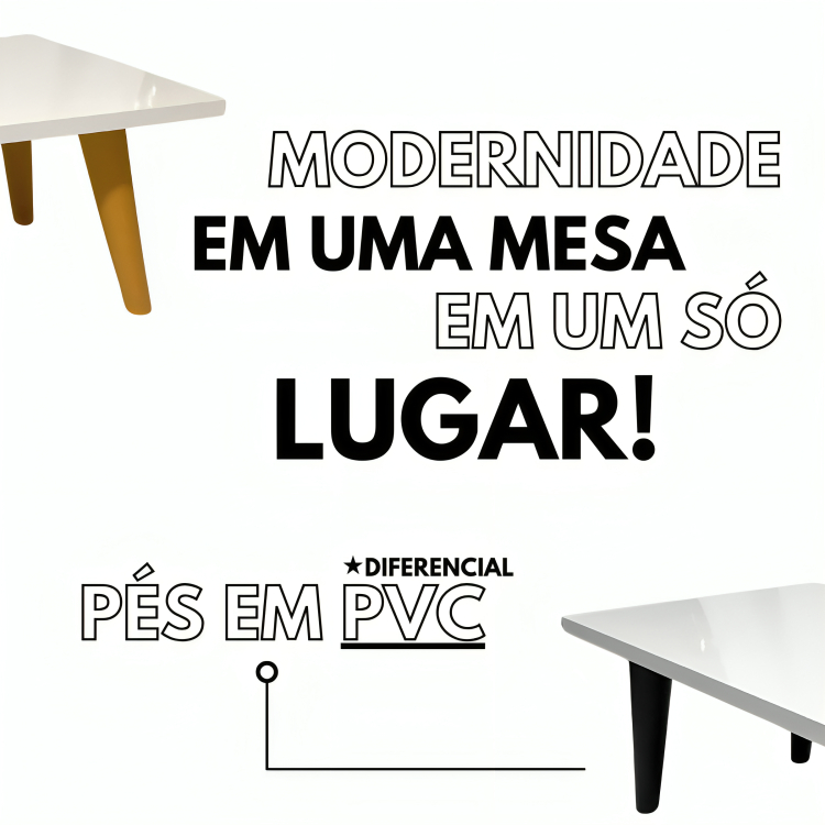 Mesa De Centro 50cm Retangular Com Pés Palito PVC Retro Decoração Sala De Estar Modernic