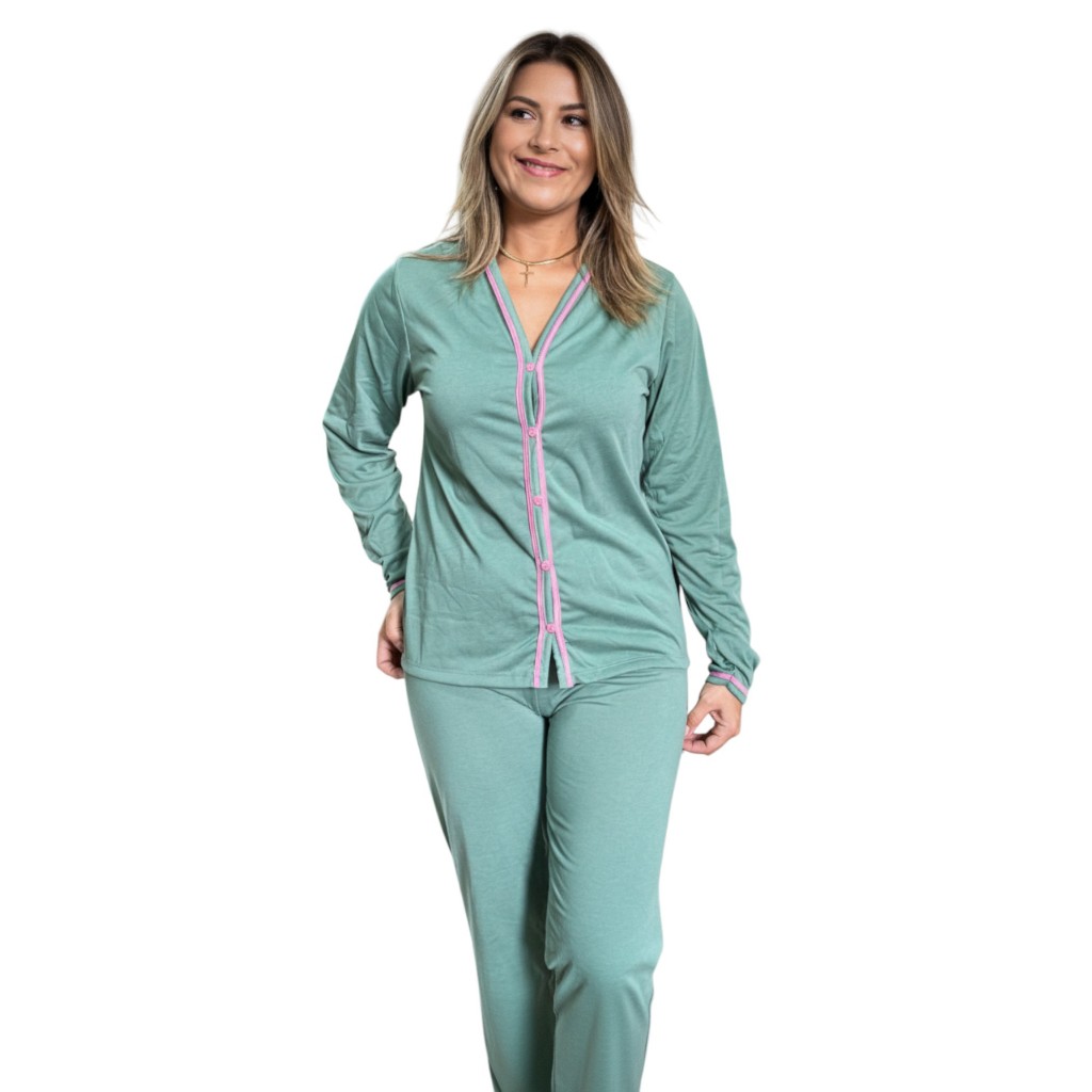 Pijama Amamentação Americano com Abertura Frontal inverno Botões de malha