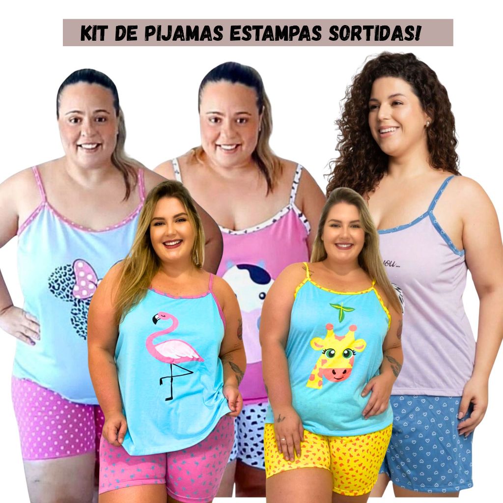 Kit 2 Baby Doll Feminino Plus Size Regata Estampado / Pijama Plus Size Estampas Sortidas