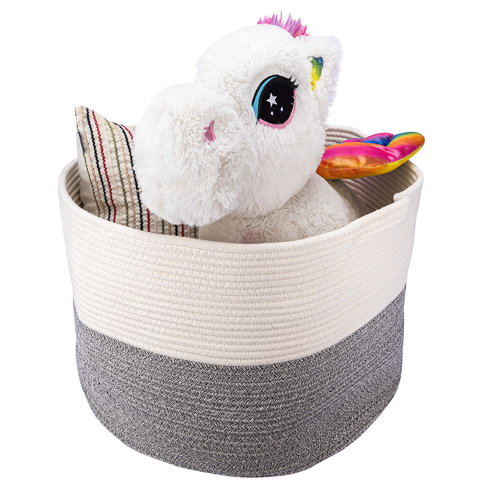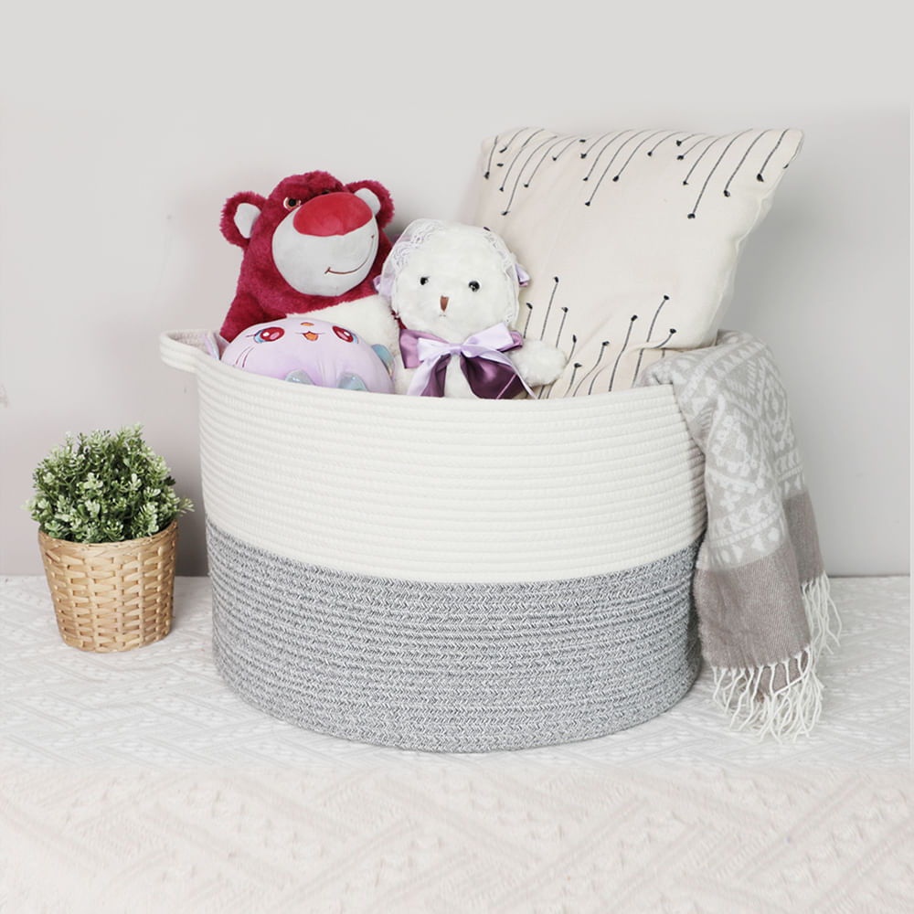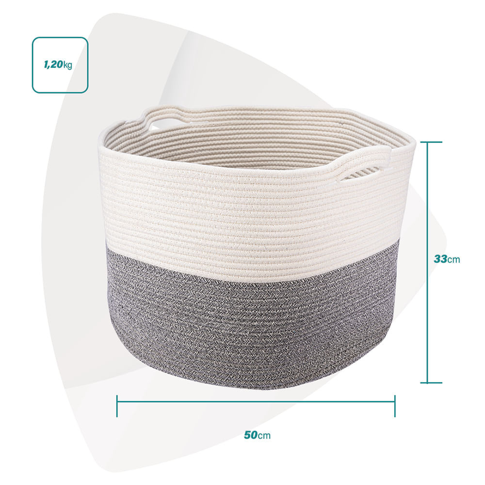 Cesto Organizador De Corda Algodão Para Sala Decorativo Grande Com Alças 31,5x31,5x34