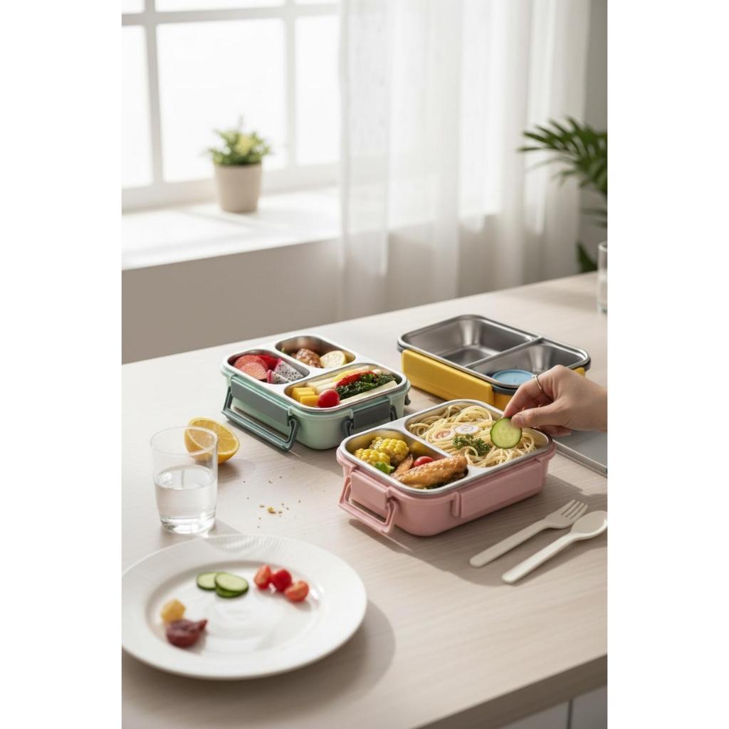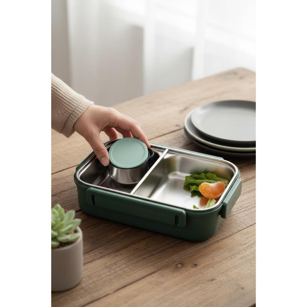 Lancheira Marmita com Divisórias e talheres Aço Inoxidável À Prova De Vazamentos