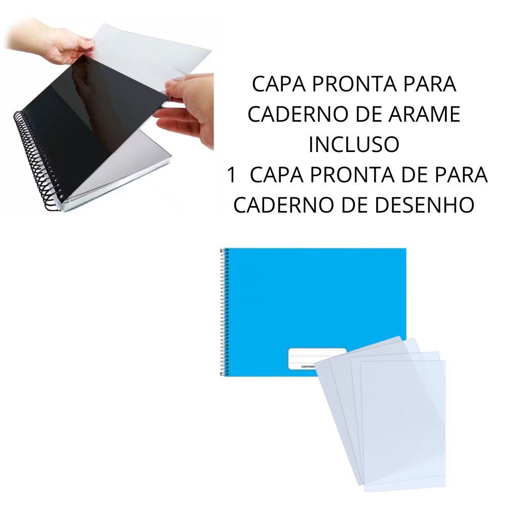 CAPA PRONTA PLASTICA ENCAPAR CADERNO DE ARAME CAPA DURA 96 FOLHA SOLTA
