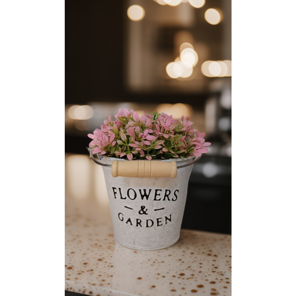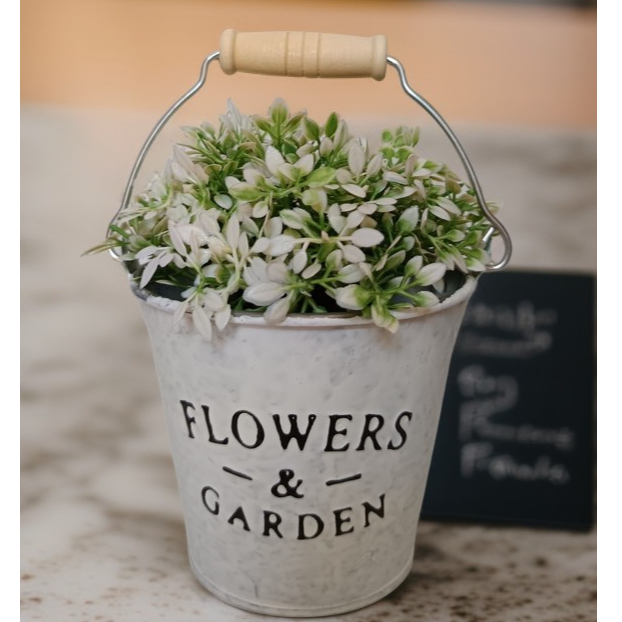 Mini Balde Branco com Mini Buquê Artificial em Silicone – Decoração Delicada