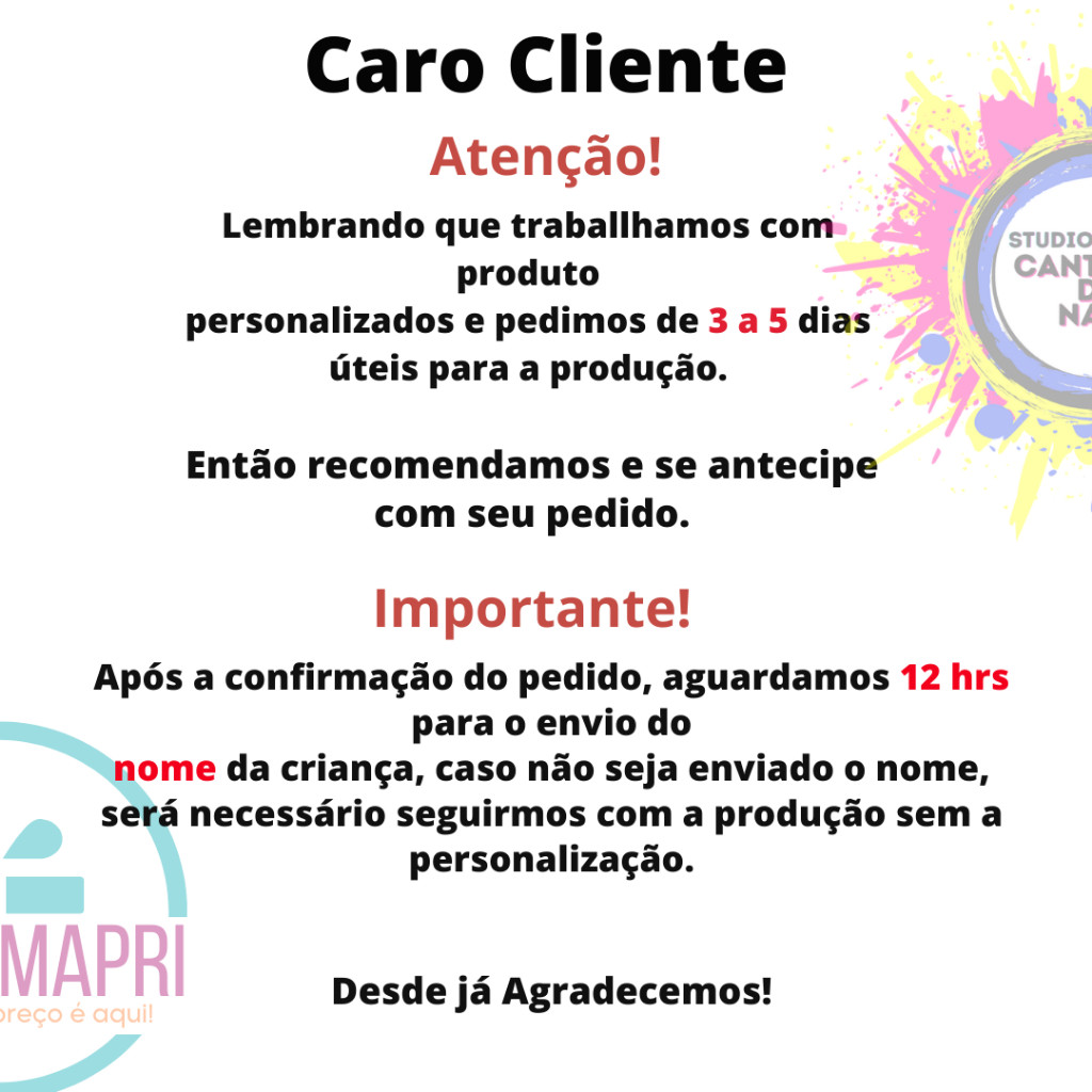 Sob encomenda: envio após 5 dias da compra