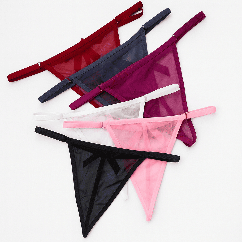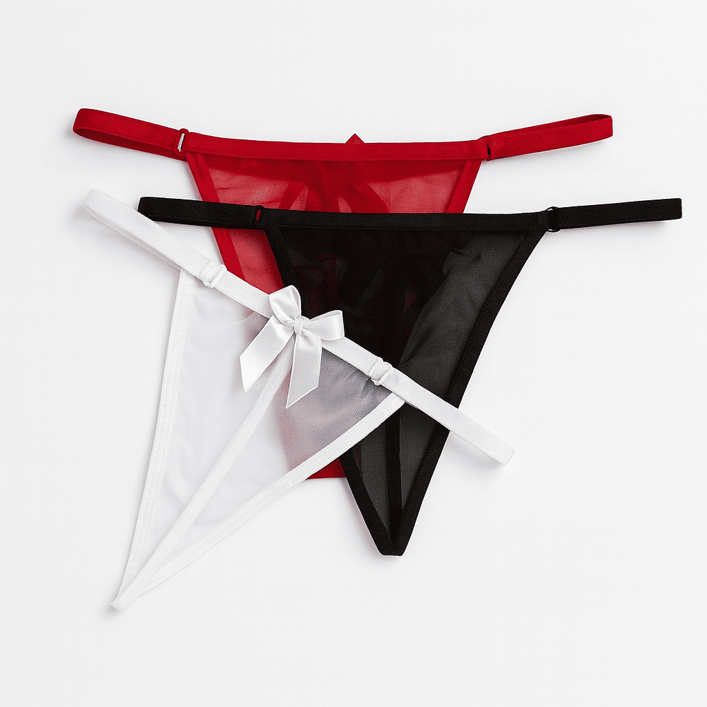 Mit Lingerie Kit 3 Calcinha Sexy Tanga Fio Dental Tule Com Laço