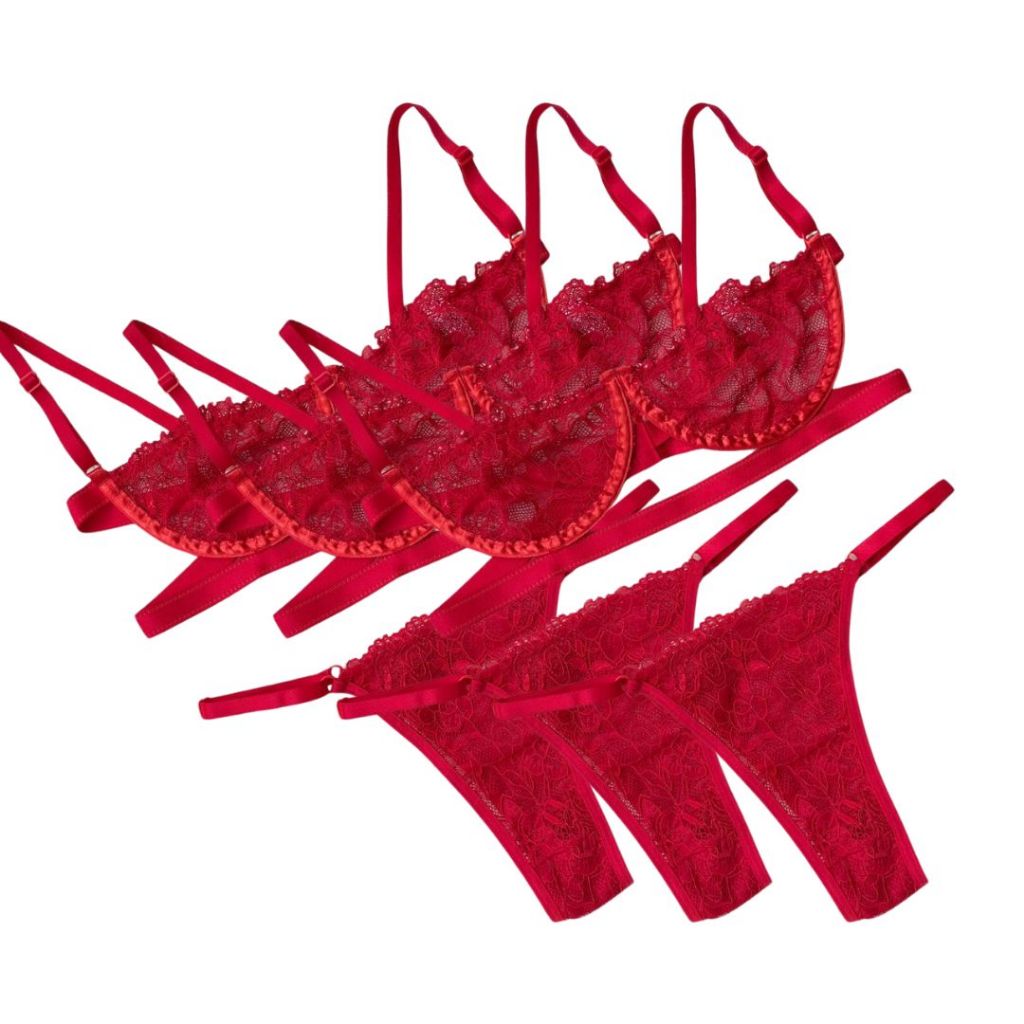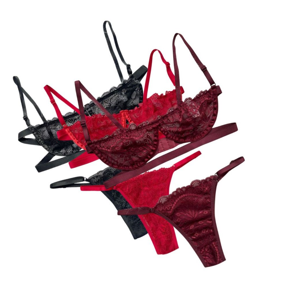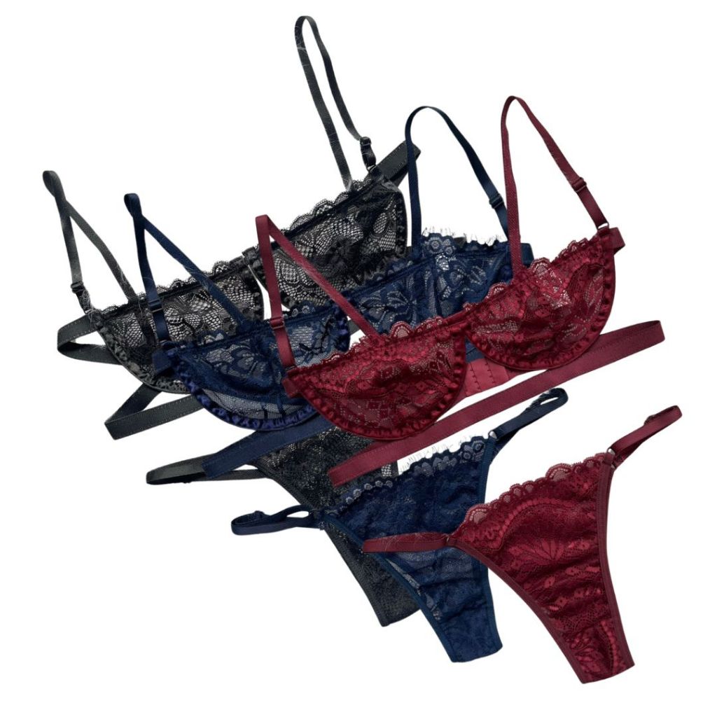 Langerie Feminina Sexy Kit 3 Conjunto Lingerie Gringa Sutiã Meia Taça Com Aro Calcinha De Renda