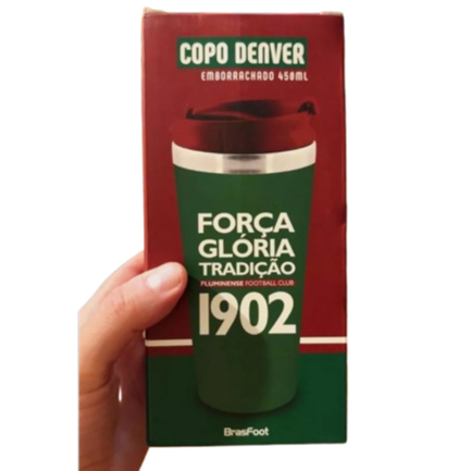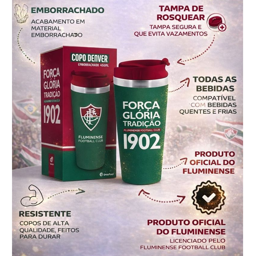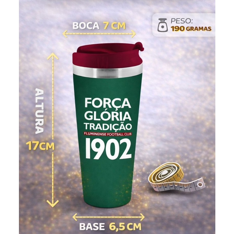 Copo Térmico Emborrachado 450ml Interior Inox c/ Tampa Fluminense Conserva Bebidas Geladas e Quentes