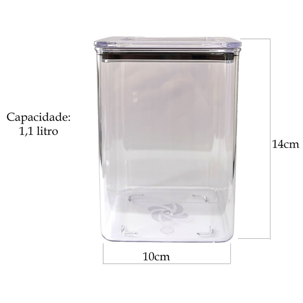 Kit 4 Potes Herméticos Quadrados Mantimentos Organizador Cozinha Acrílico 1,1 Litro
