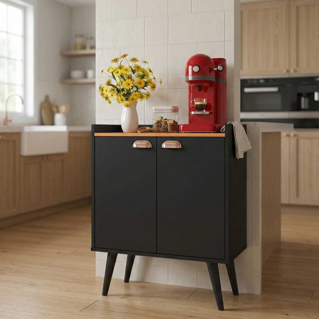 Aparador Buffet Balcão 2 Portas com Pés Retro Cantinho Do Café Sala Estar Jantar Cozinha