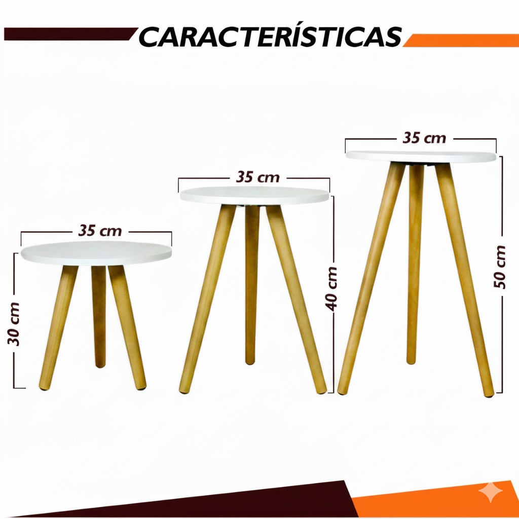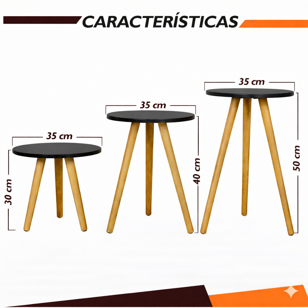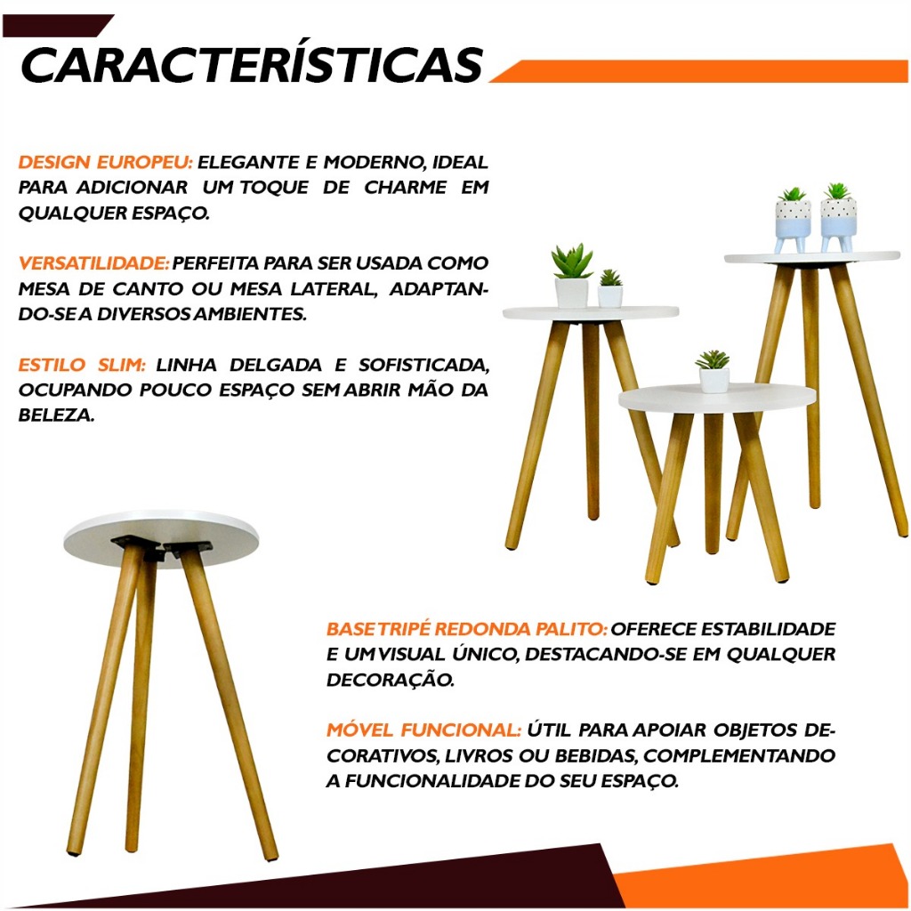 Jogo De Mesa Mesas Redonda Trio De Centro Canto Pe Palito Decoração Casa Sala Quarto Escritório