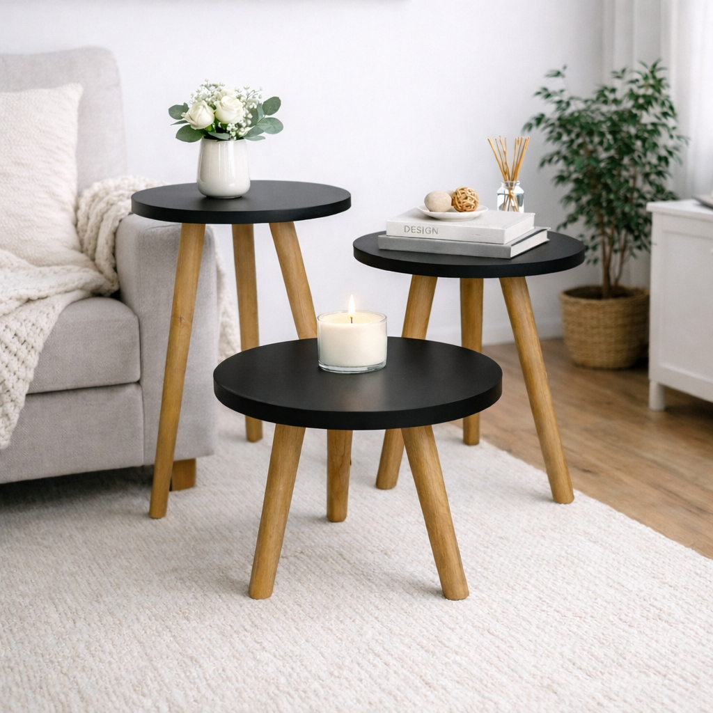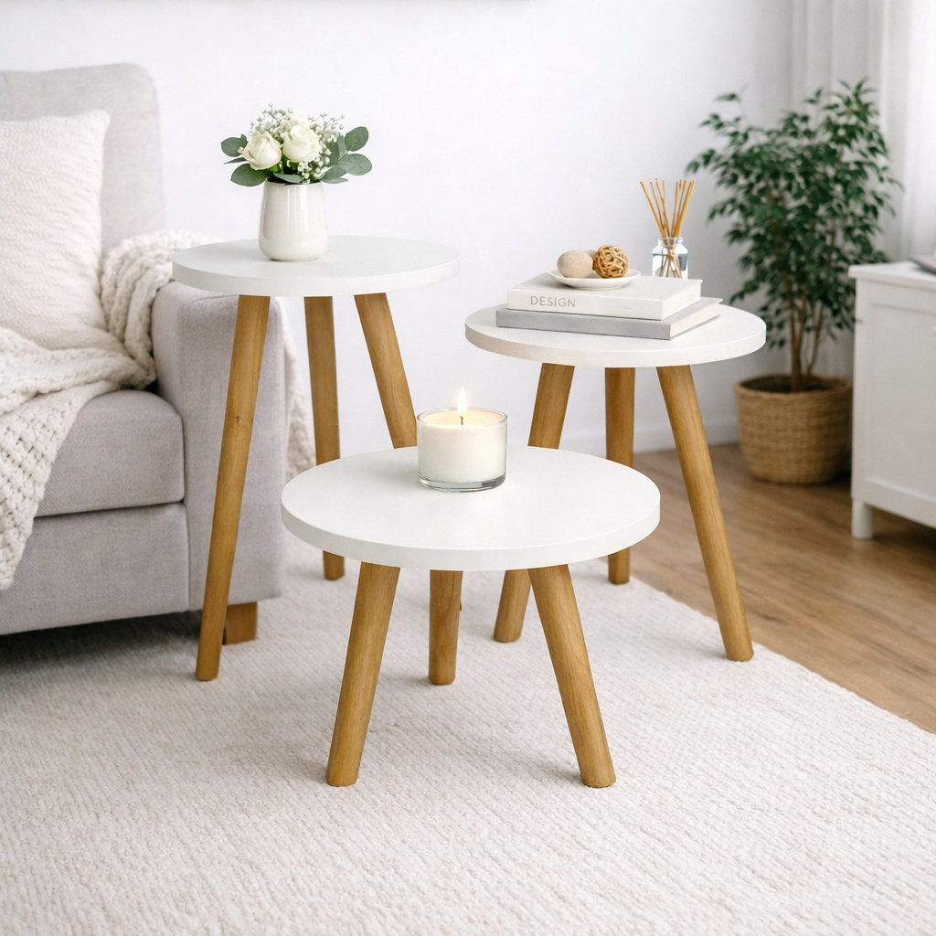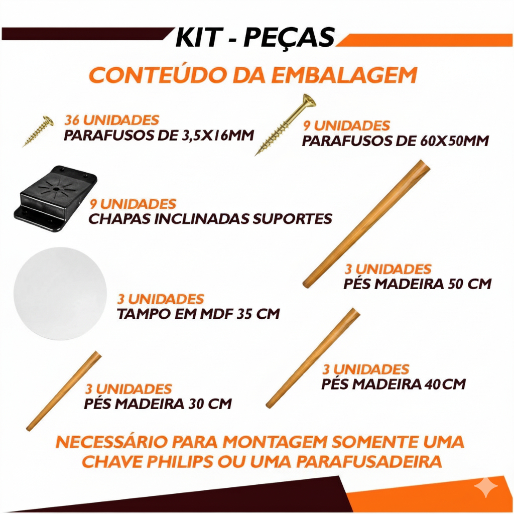 Jogo De Mesa Mesas Redonda Trio De Centro Canto Pe Palito Decoração Casa Sala Quarto Escritório