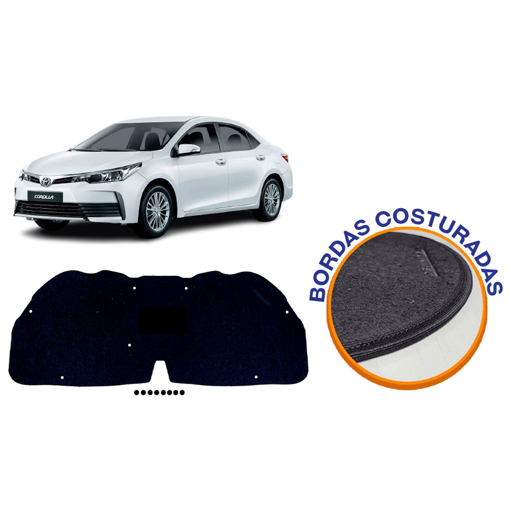 Forro Manta Capô Toyota Corolla 2015 a 2019 Autoadesivo com Presilhas Trainmec Térmico Acústico
