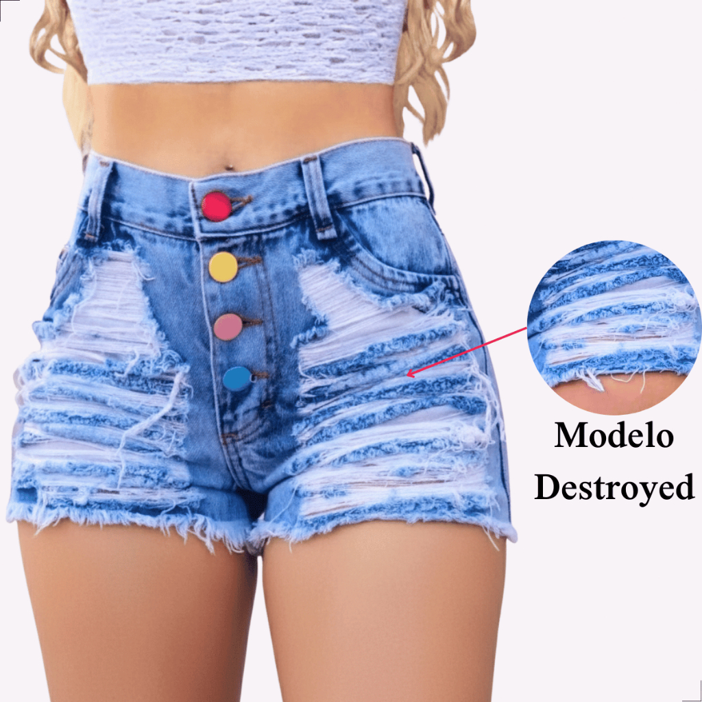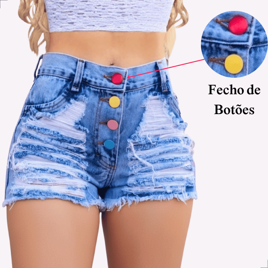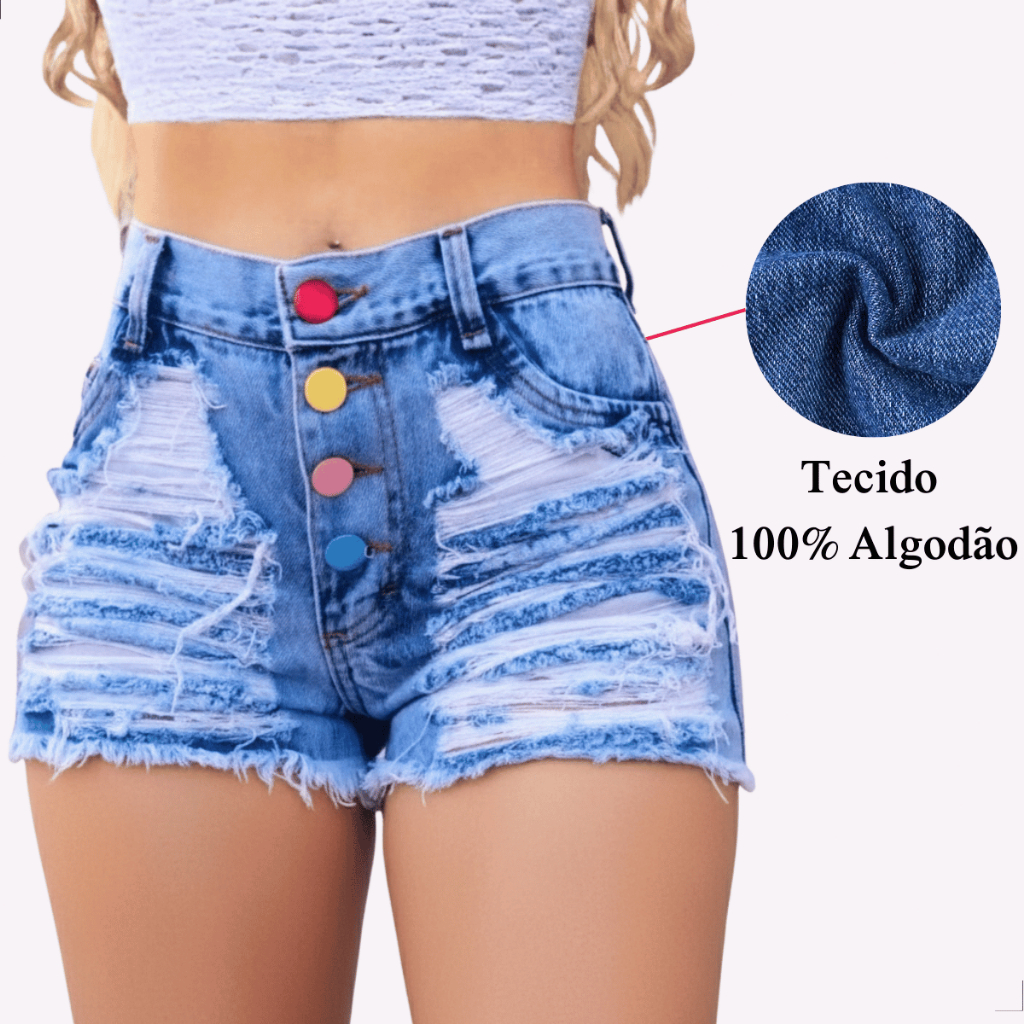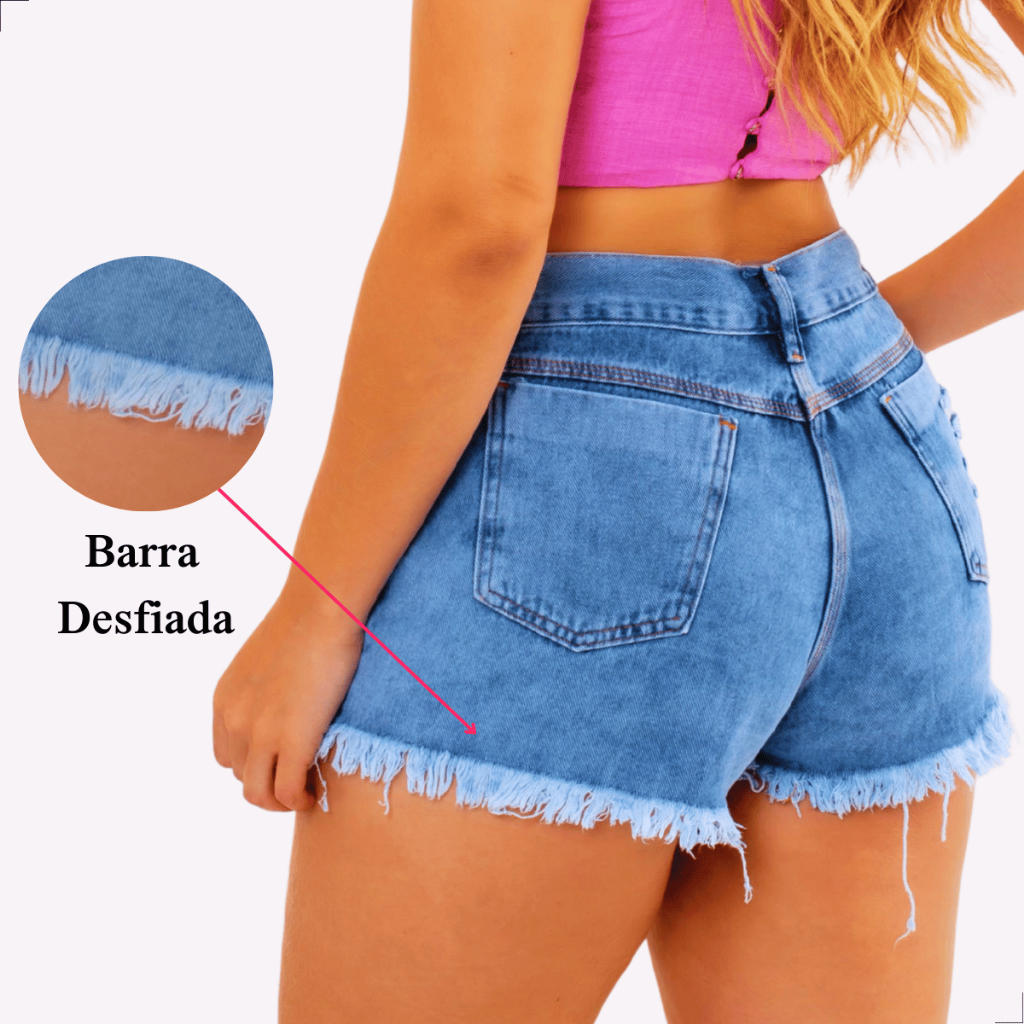Short Jeans Feminino Cintura Alta Barra Desfiada Sem Lycra Blogueira