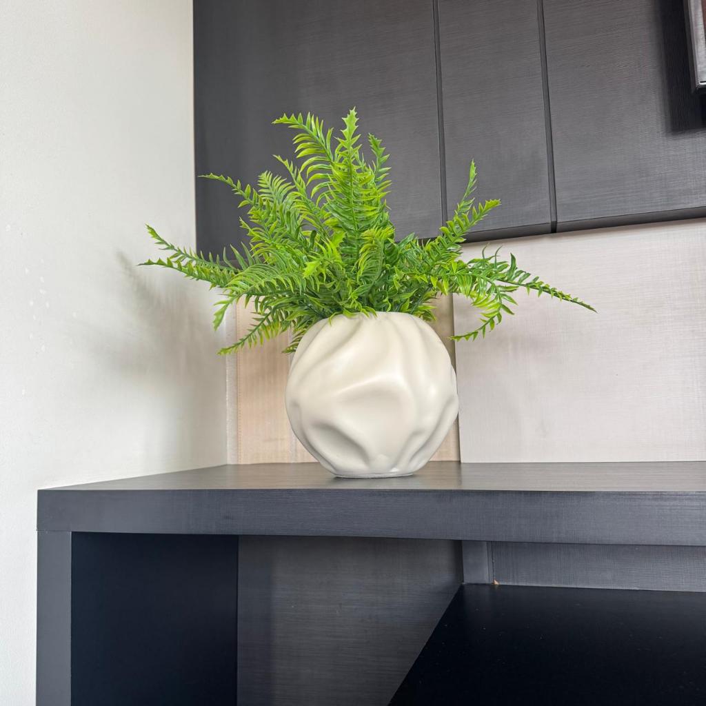 Decoração sala aparador vaso branco cerâmico orgânico pintura fosco acetinado