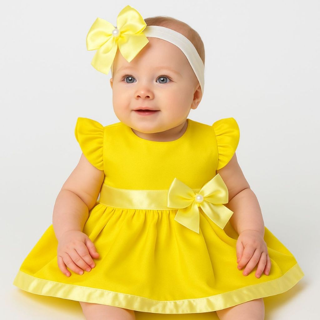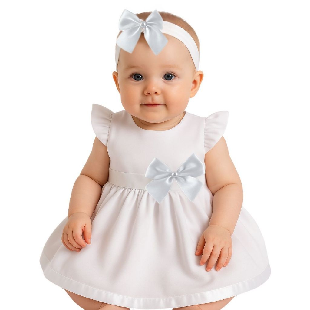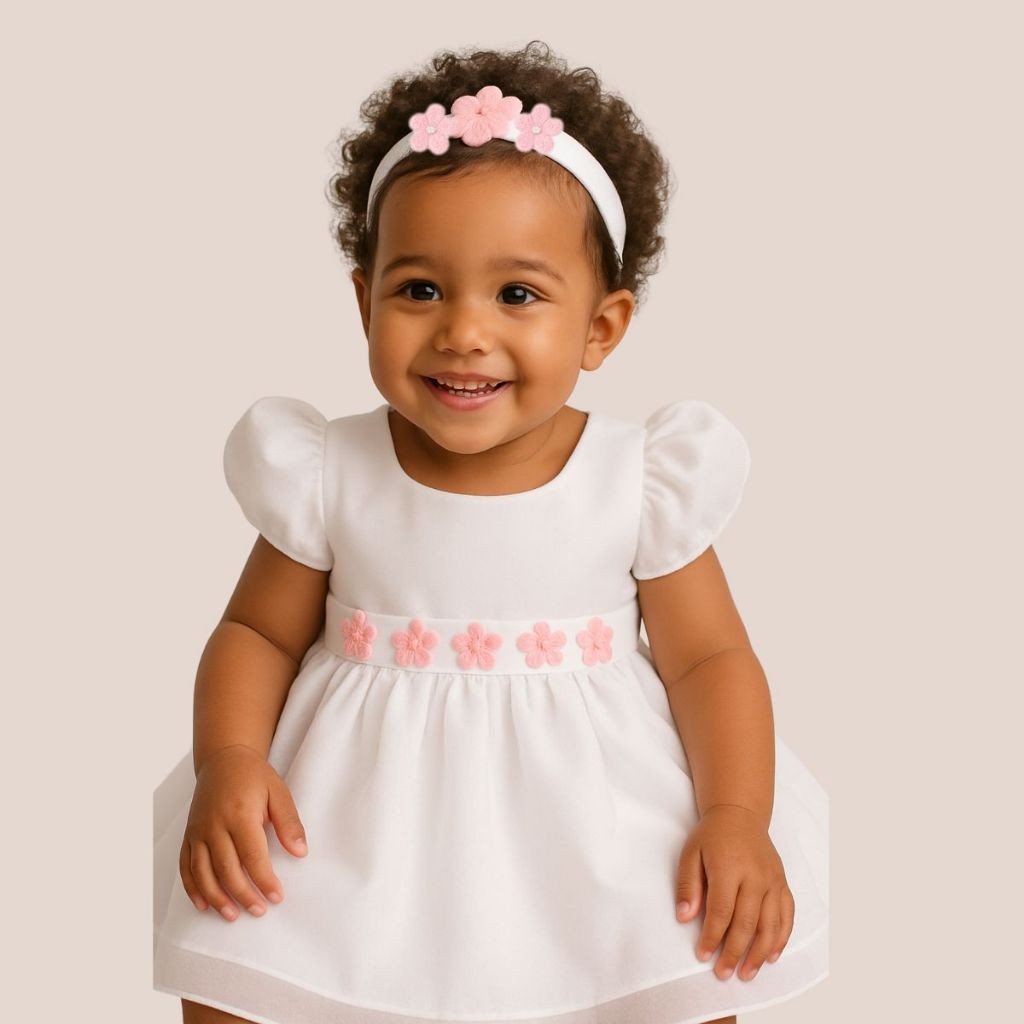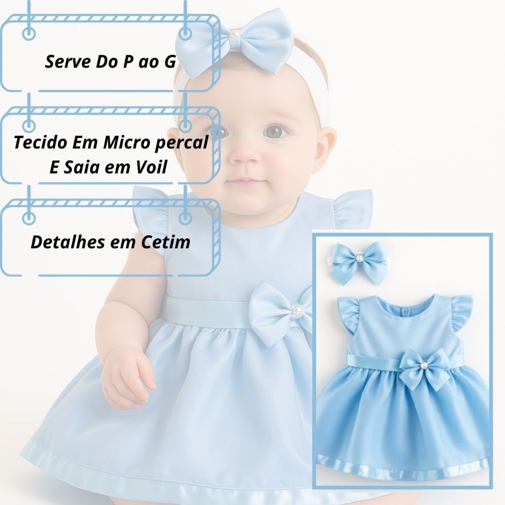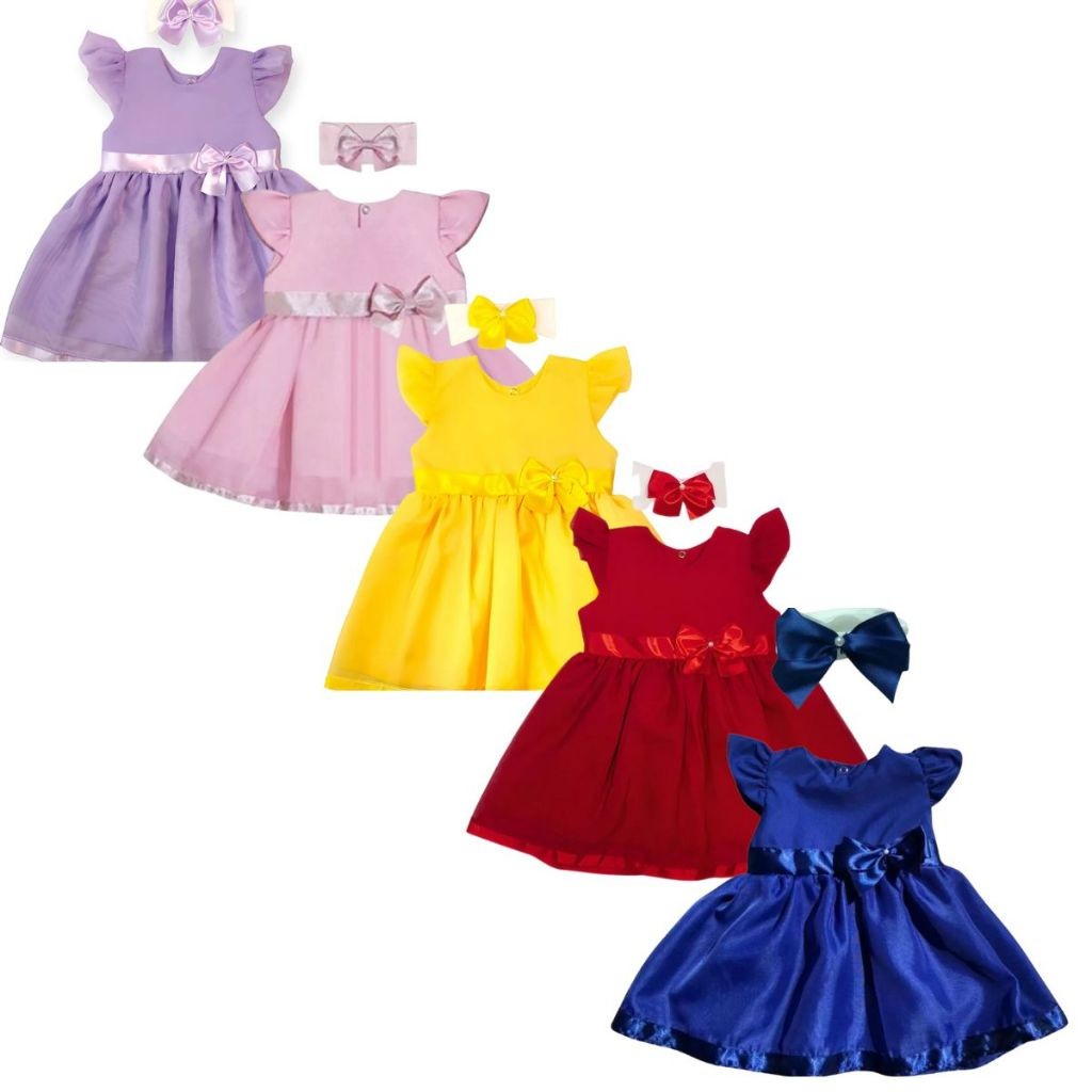 Vestido Princesa Bebê Luxo com Tiara 100% Algodão Roupinha Festa Batizado Aniversário Natal Reveion Chá Várias Cores