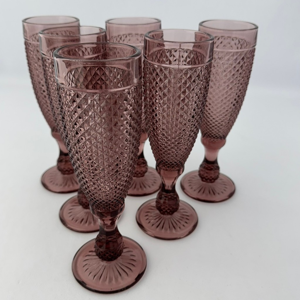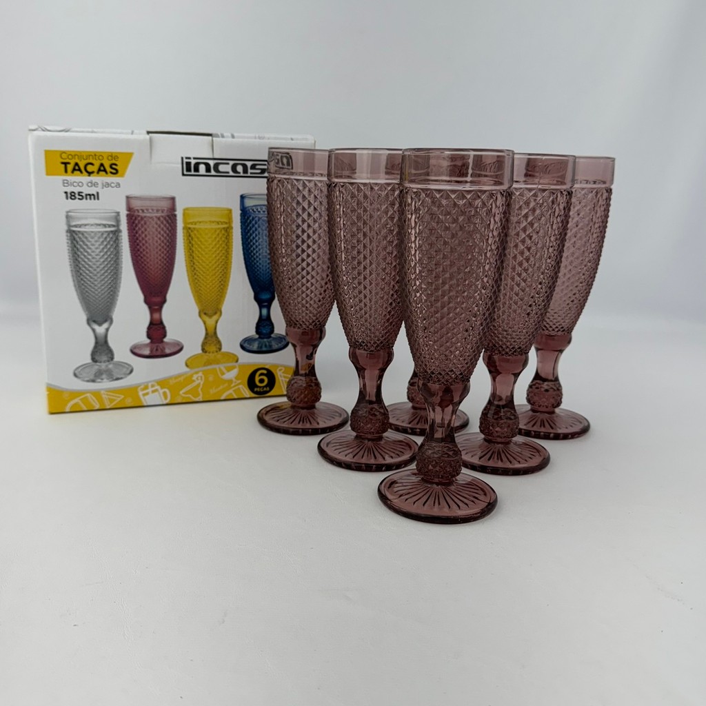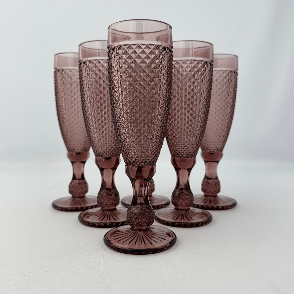 06 Taças Flute Champanhe Decorada Bico Jaca Marsala em Vidro
