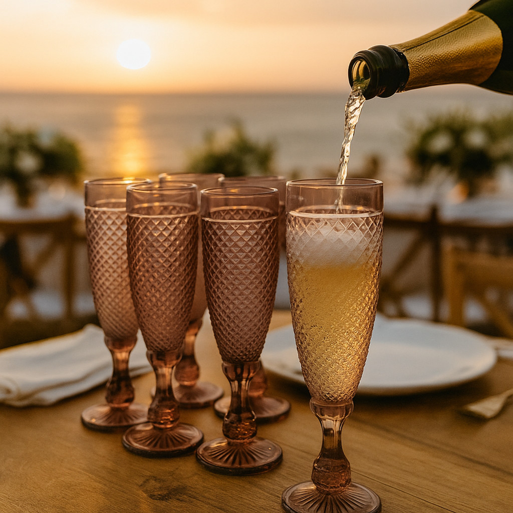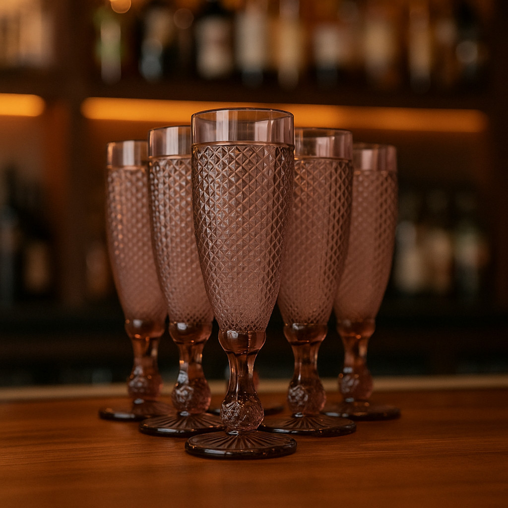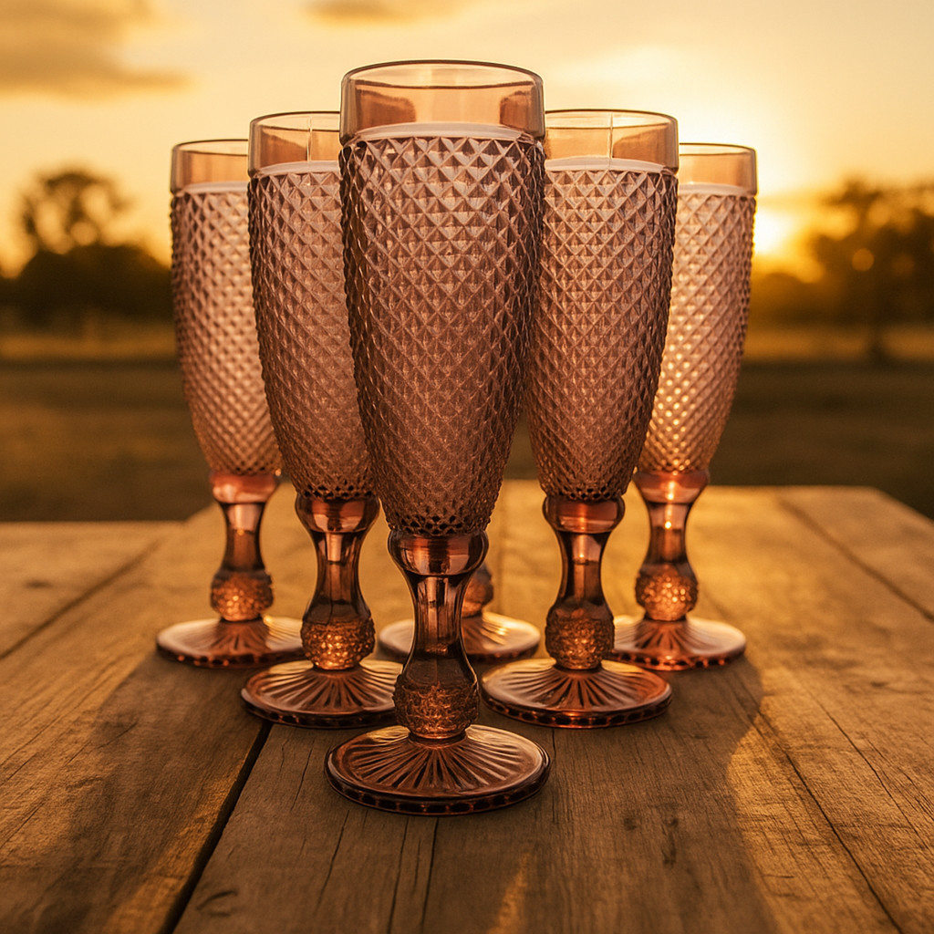 06 Taças Flute Champanhe Decorada Bico Jaca Marsala em Vidro