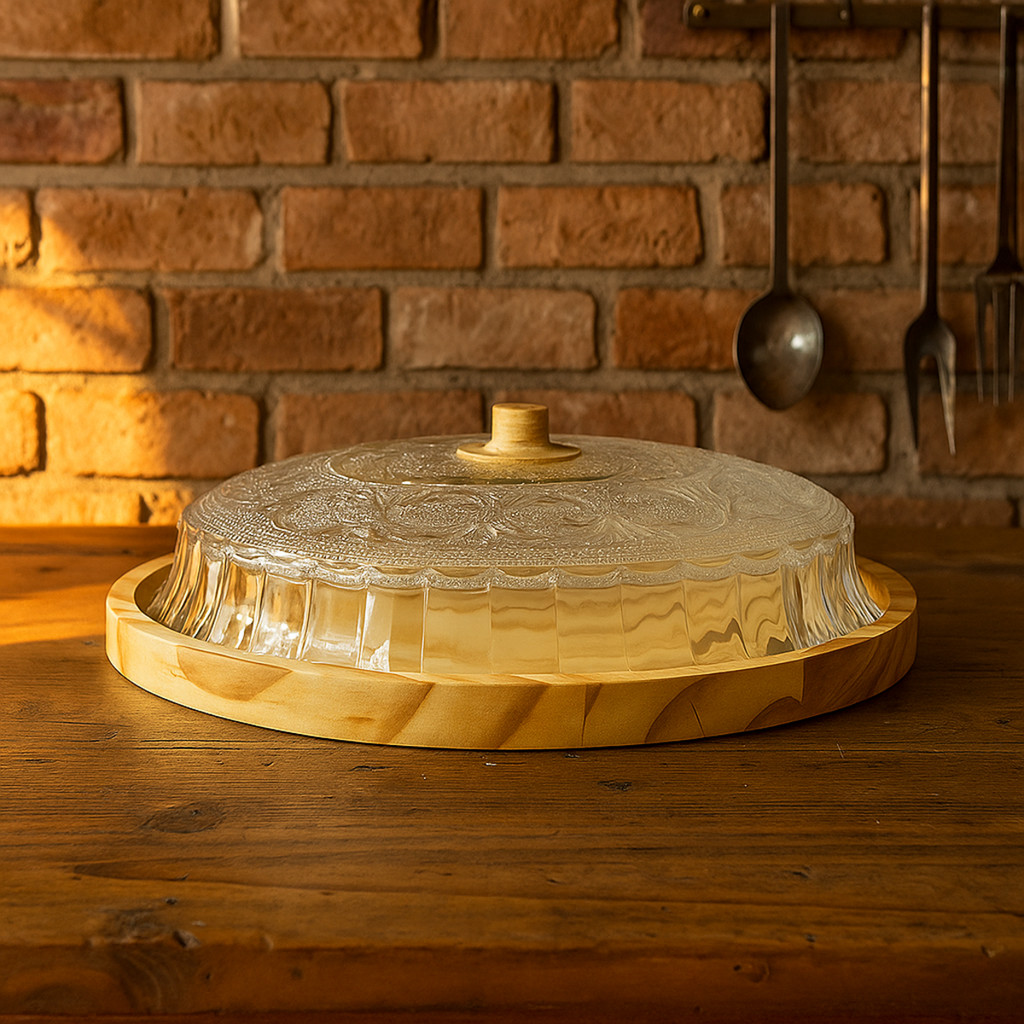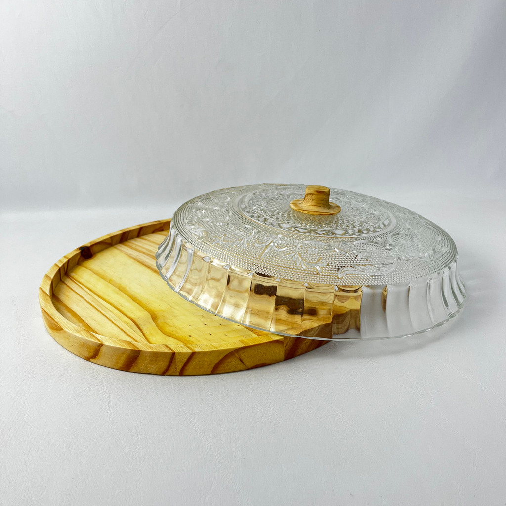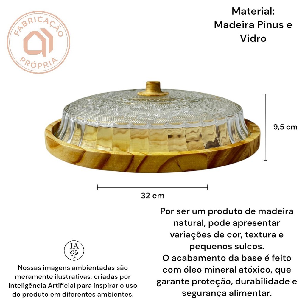 Porta Pudim Torta Saladeira Artesanal Madeira Boho Chic