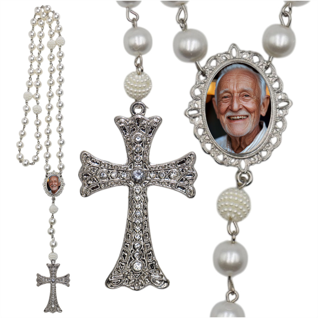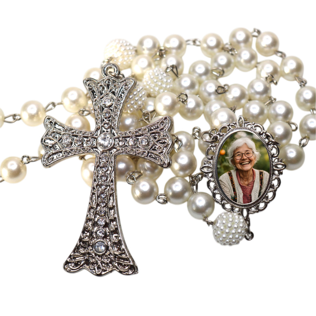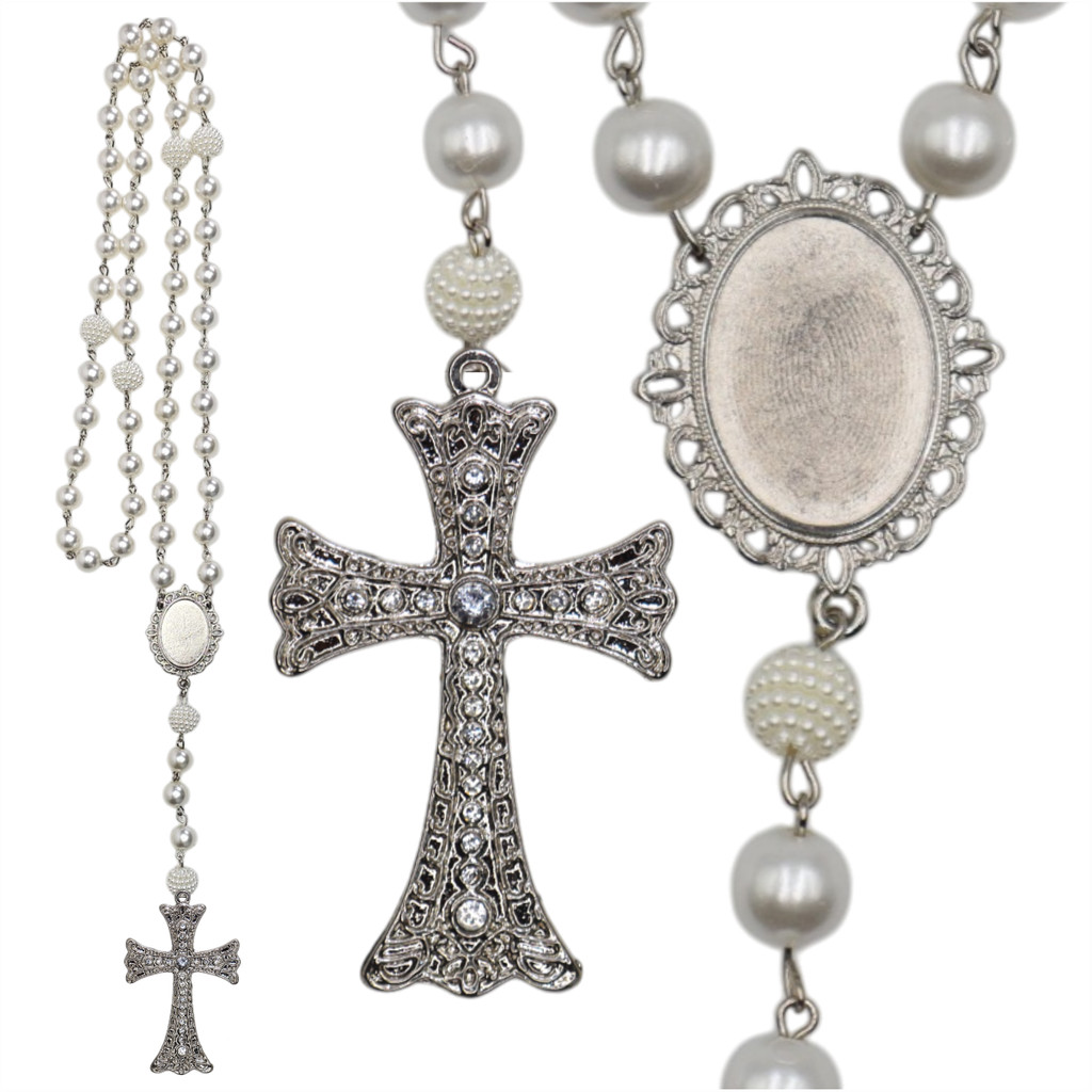 Terço De Noiva Com Foto Crucifixo Pedrarias Medalha Relicario Personalizado Tradicional Catolico