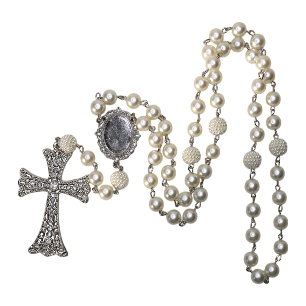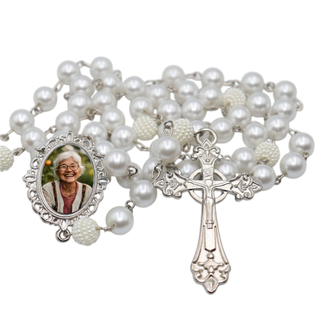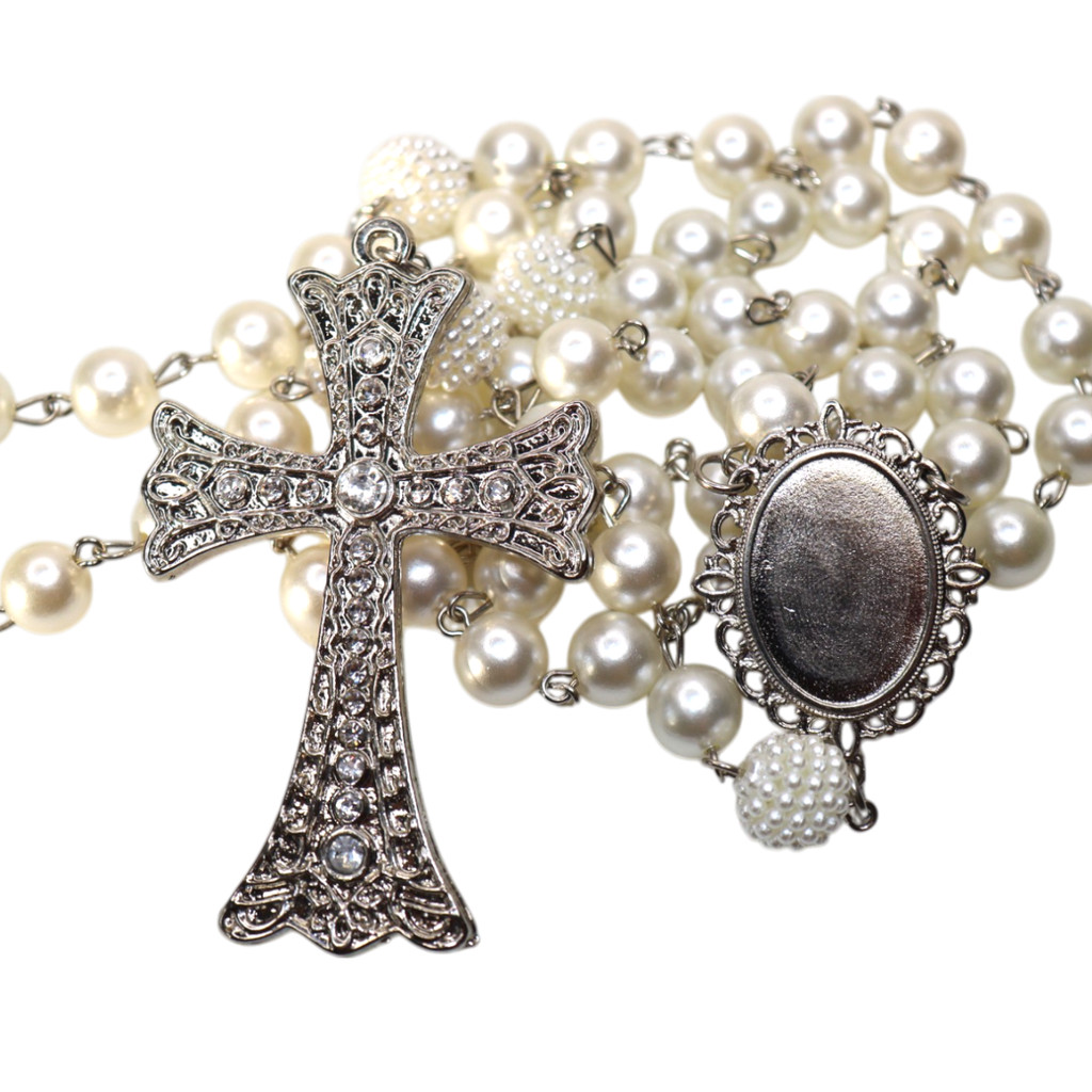 Terço De Noiva Com Foto Crucifixo Pedrarias Medalha Relicario Personalizado Tradicional Catolico