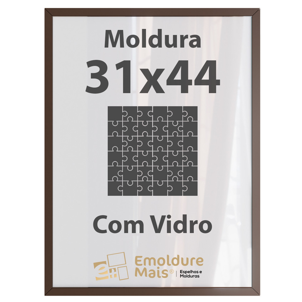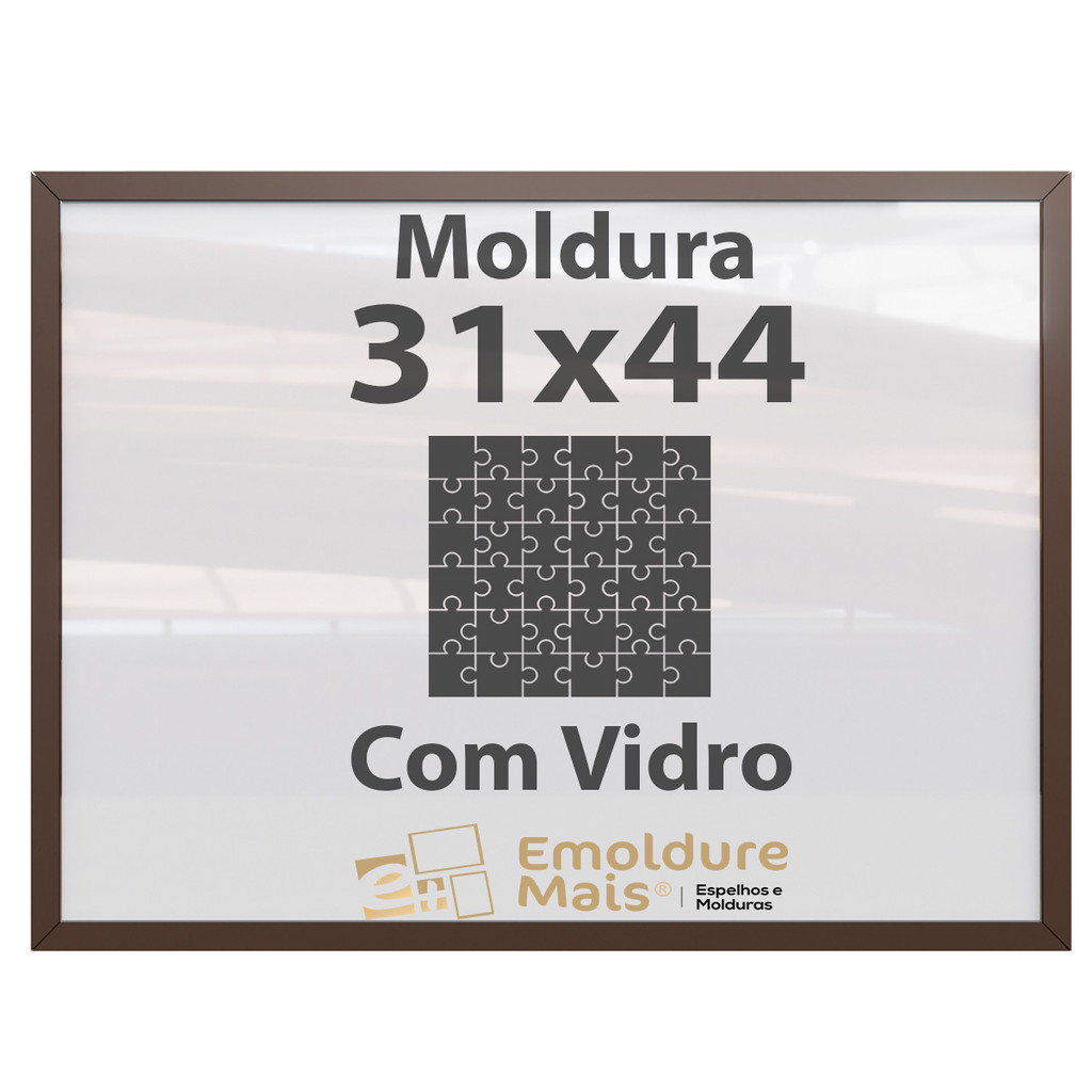 Moldura 31x44cm Com Vidro Para Quebra Cabeça Puzzle 200 Peças Fotos Poster Cor Marrom