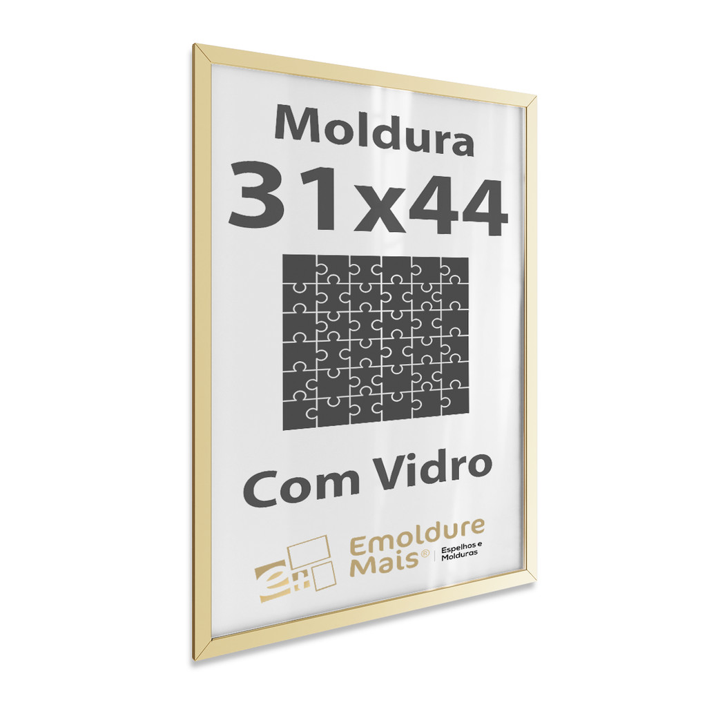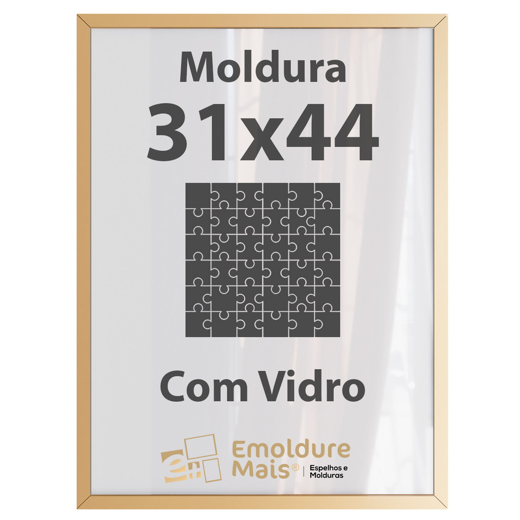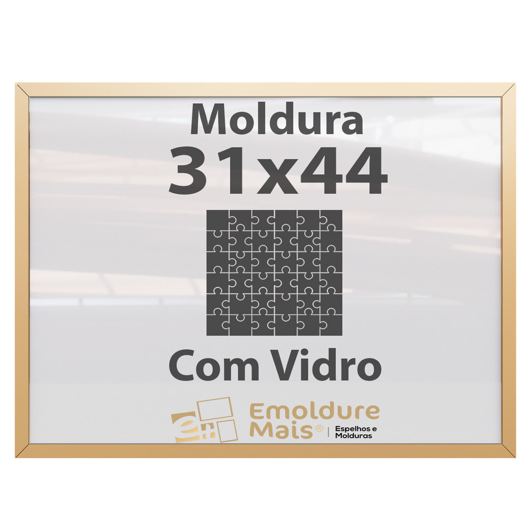 Moldura 31x44cm Com Vidro Para Quebra Cabeça Puzzle 200 Peças Fotos Poster Cor Dourada
