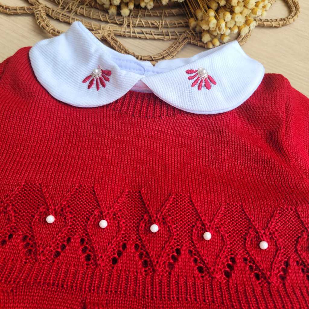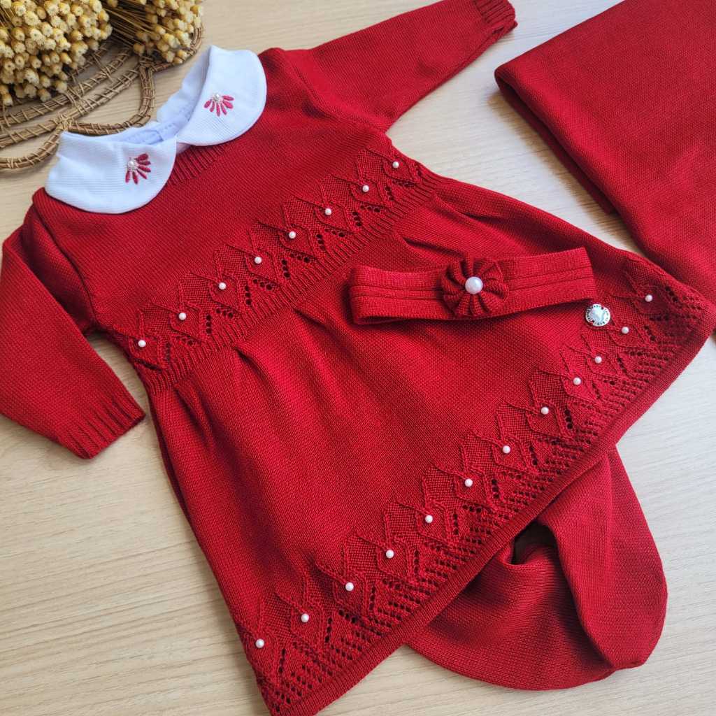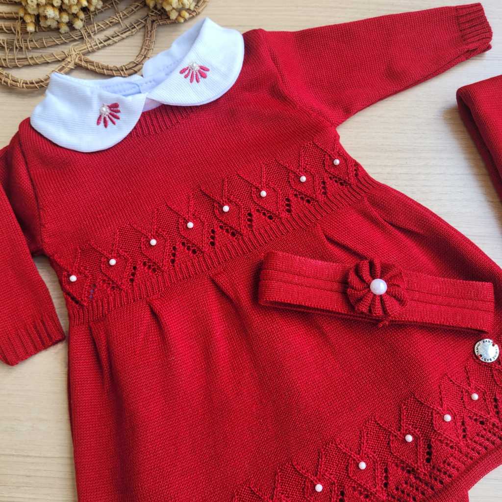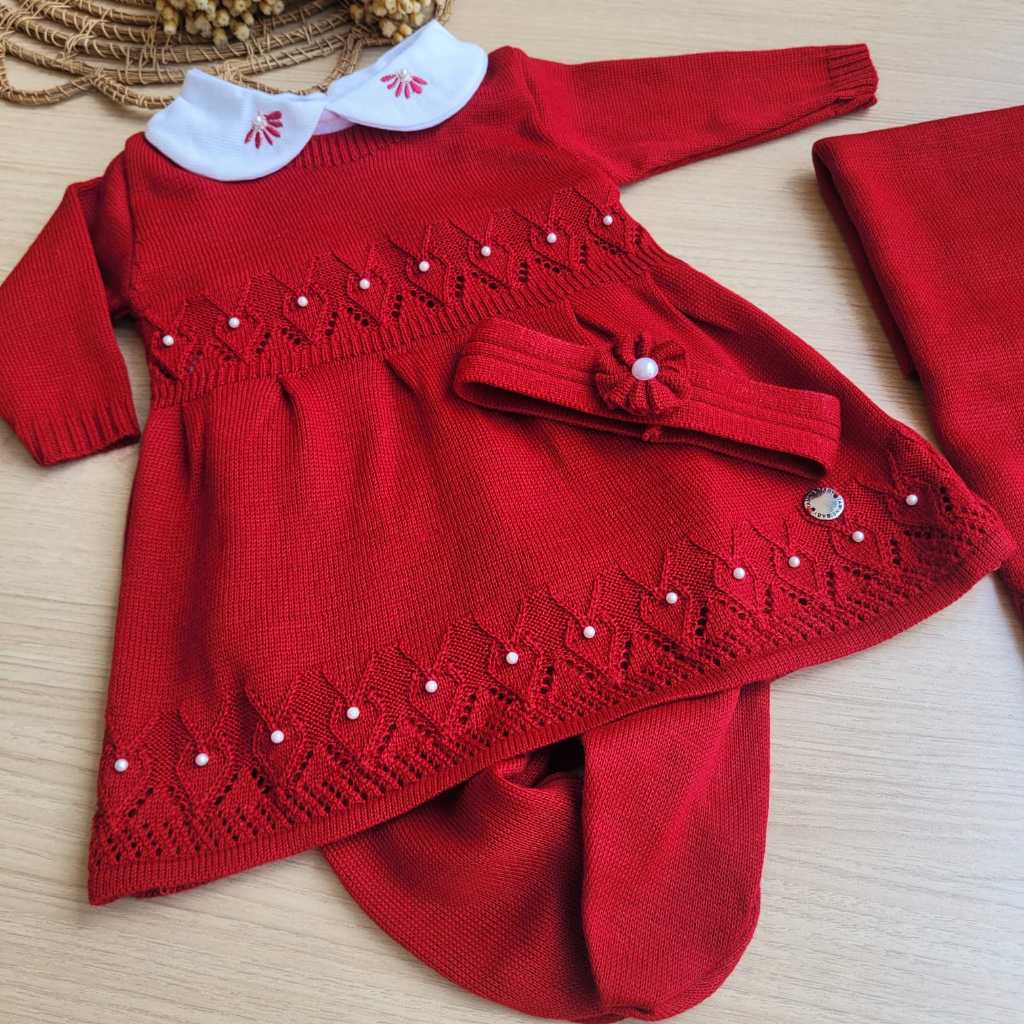 Saída de Maternidade menina Tricot vestido Gabriela Vermelho 5 peças completa