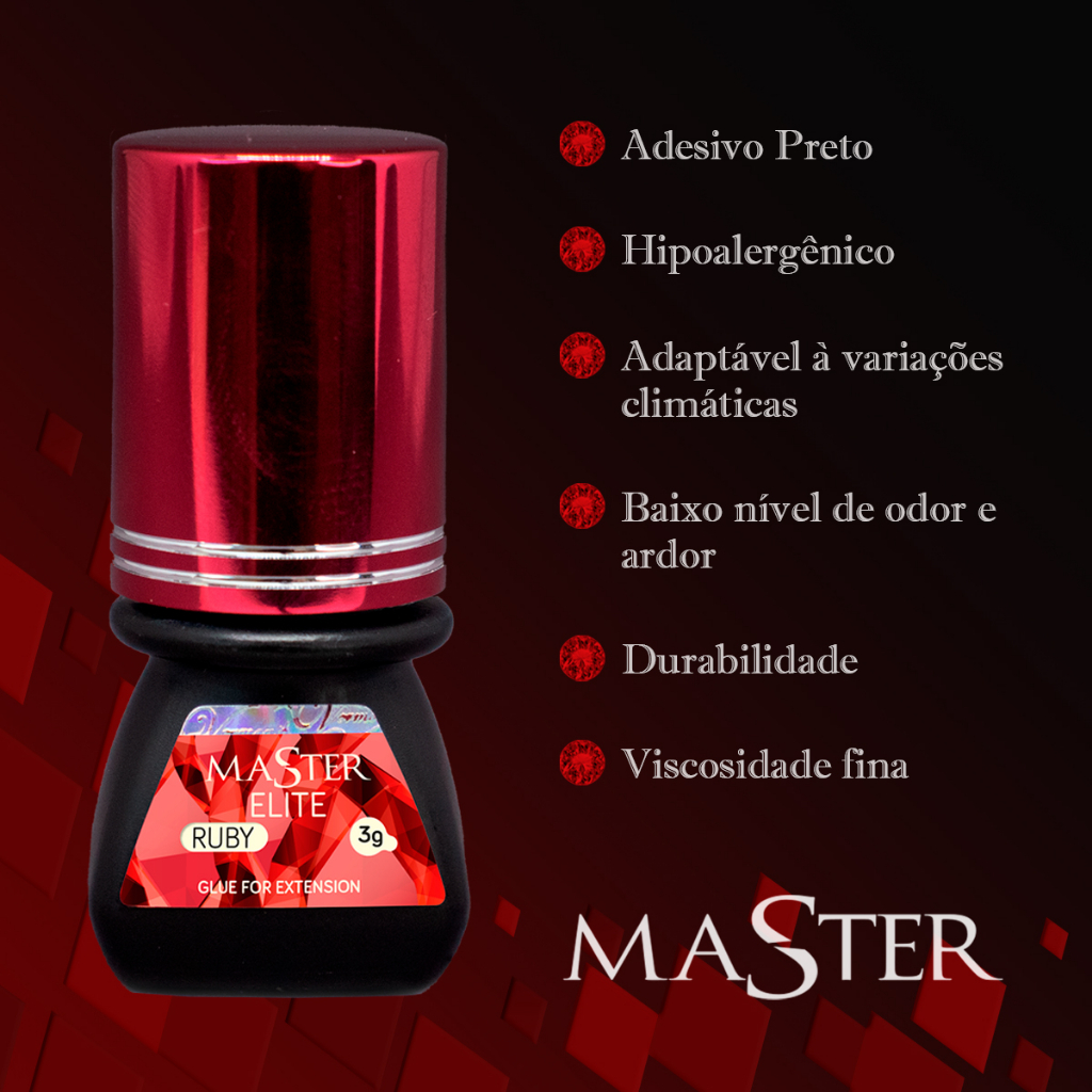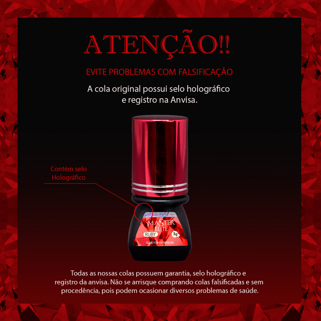 Cola Master Elite Ruby 3g Alongamento Cilios Para Extensão Fios Postiços Adesivo Com Anvisa Volume Russo Secagem Rápida