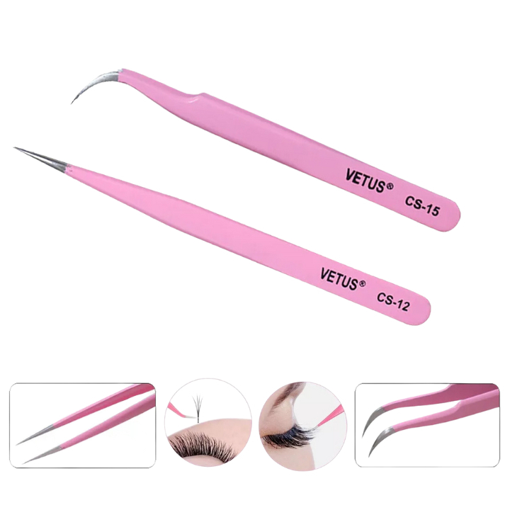 Kit de 2 Pinça Vetus Para Alongamento De Cilios Extensão De Cílios