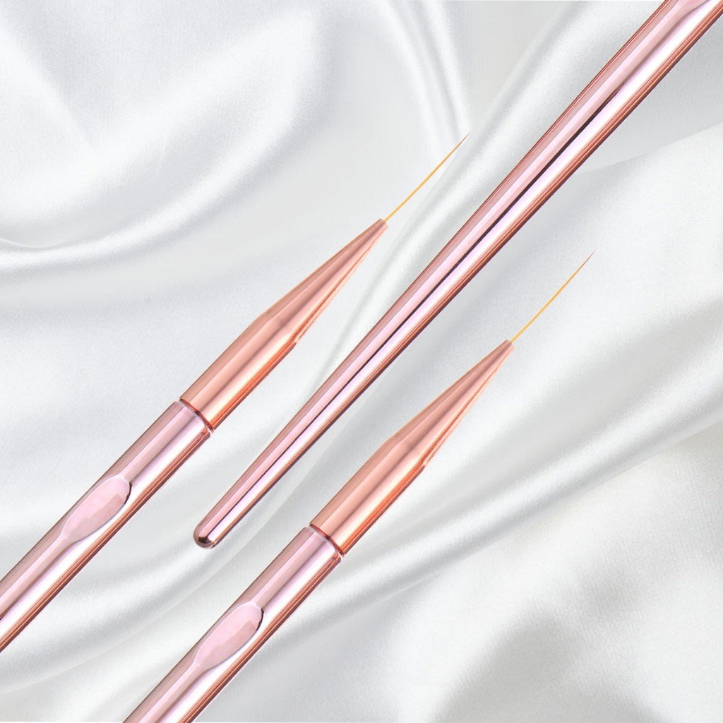 Kit de 3 Pinceis Fino para Decoração Unha Nail Art Rose Perolado Helen Color