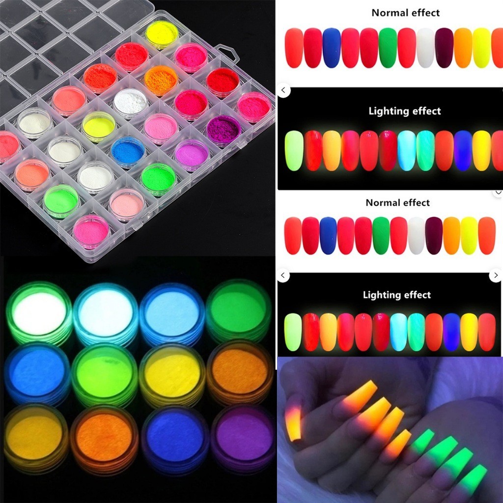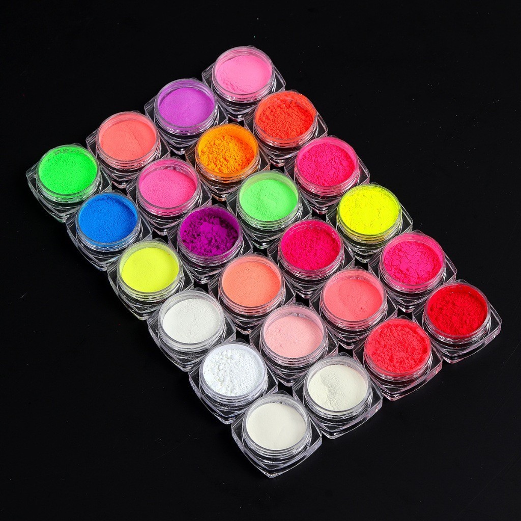 Caixa 24 Cores Pó Neon em Torre Para Decoração de Unha Maquiagem