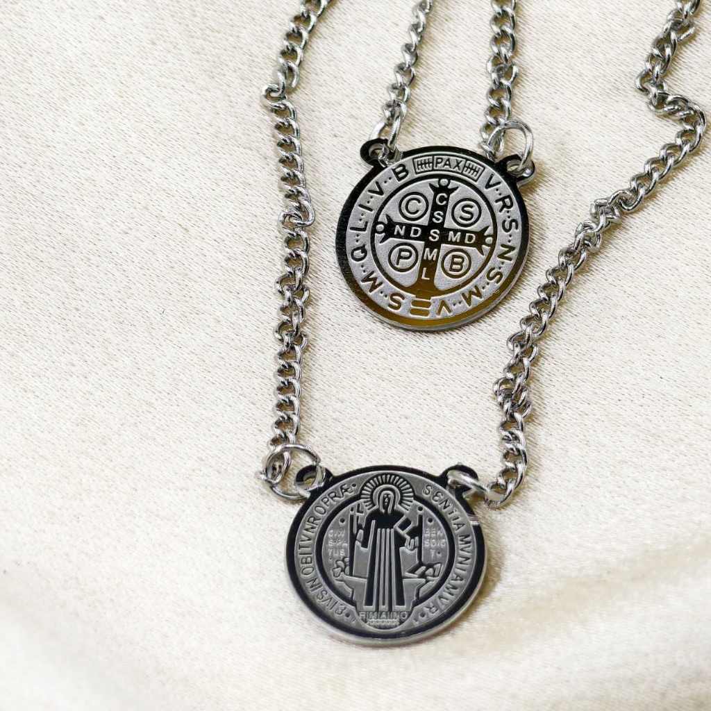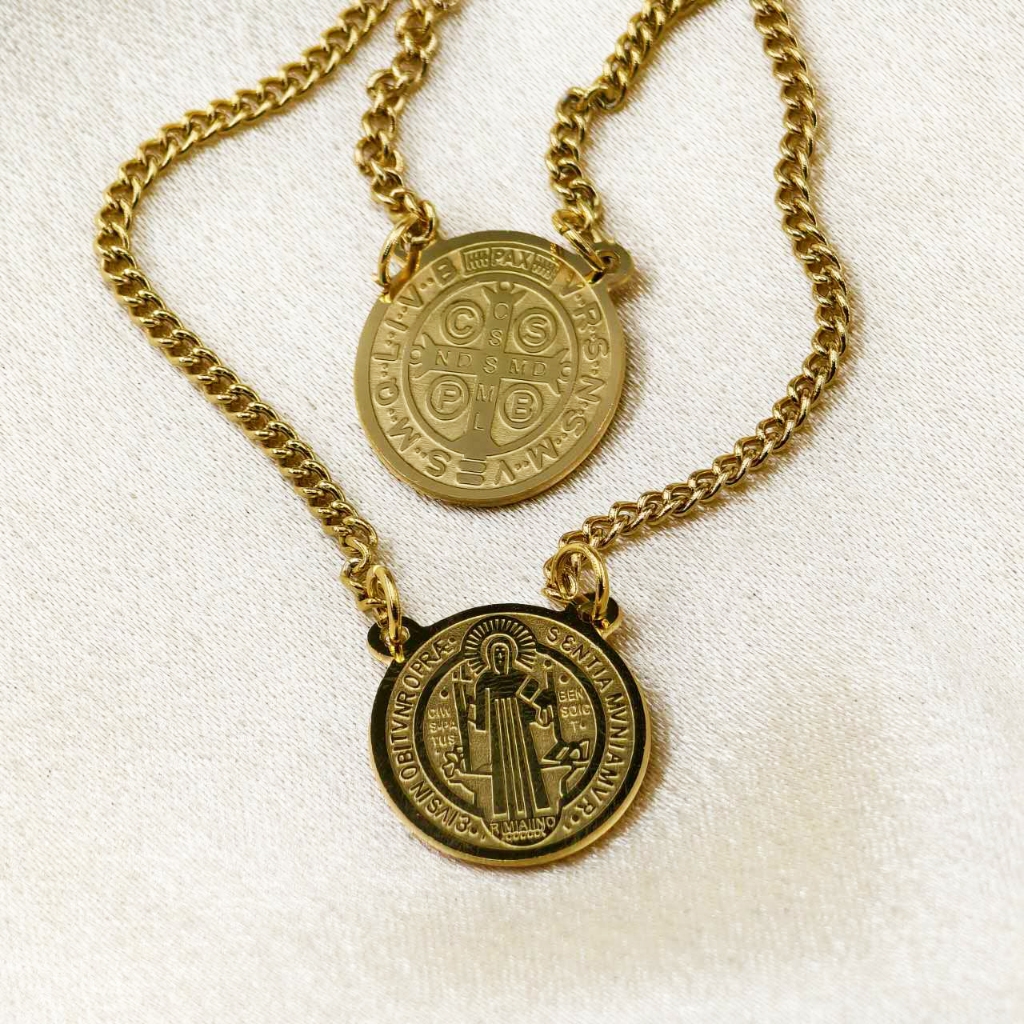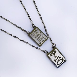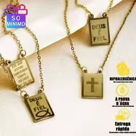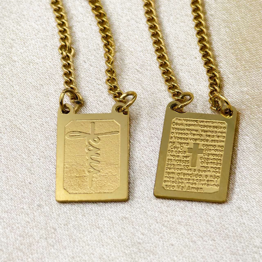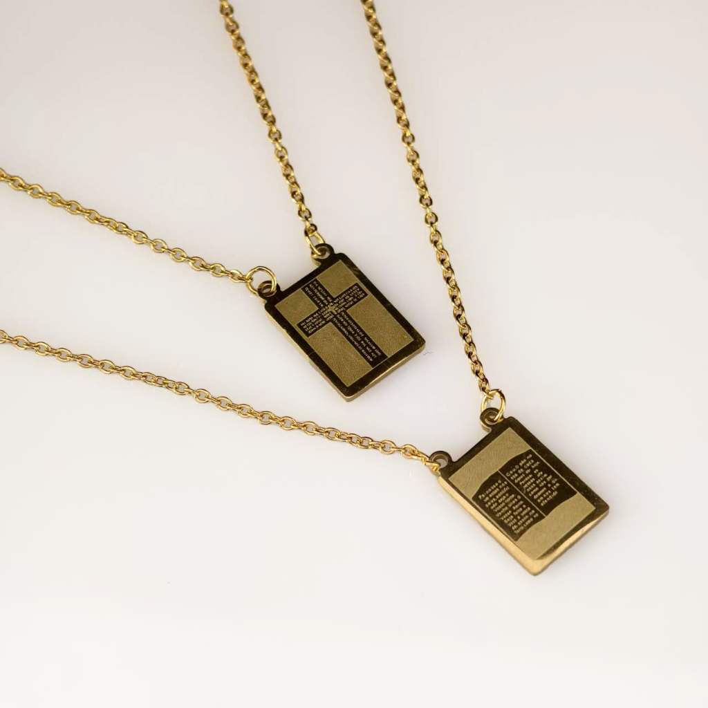 Colar Escapulário "Tudo Posso Naquele que Me Fortalece" - Prata/Dourado, Aço Inox 316L