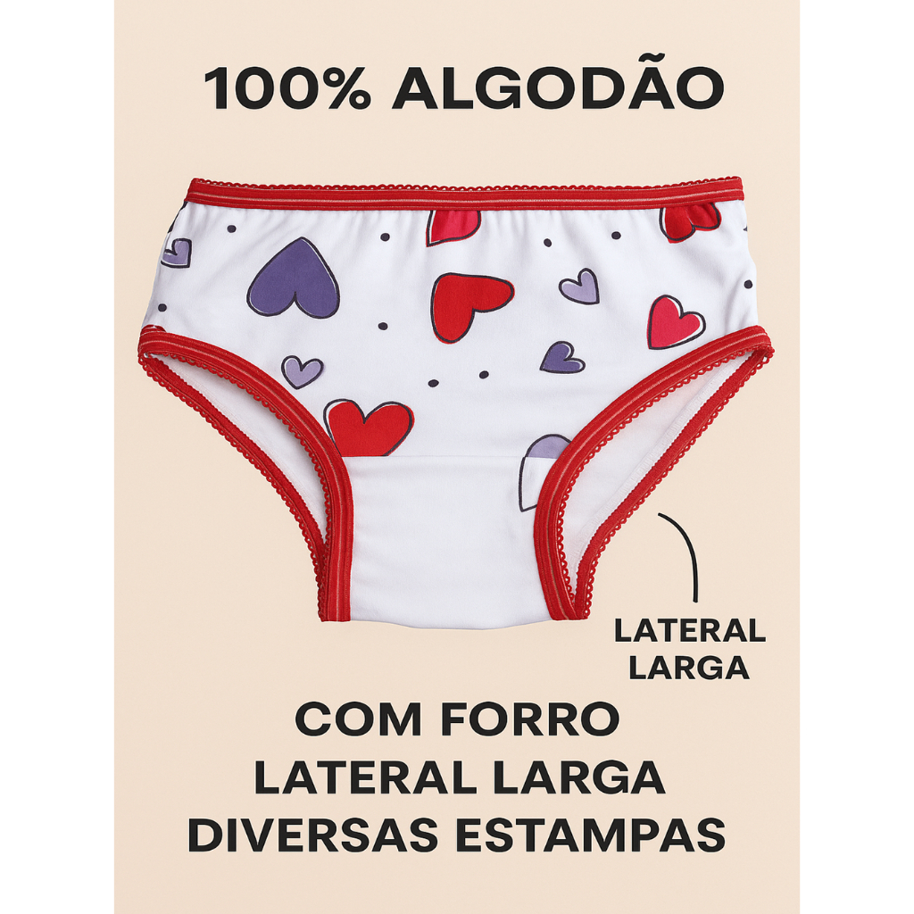 Kit 10,12 ou 20 calcinha infantil menina em 100% algodão estampadas
