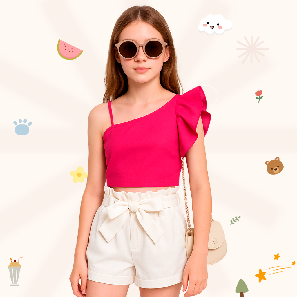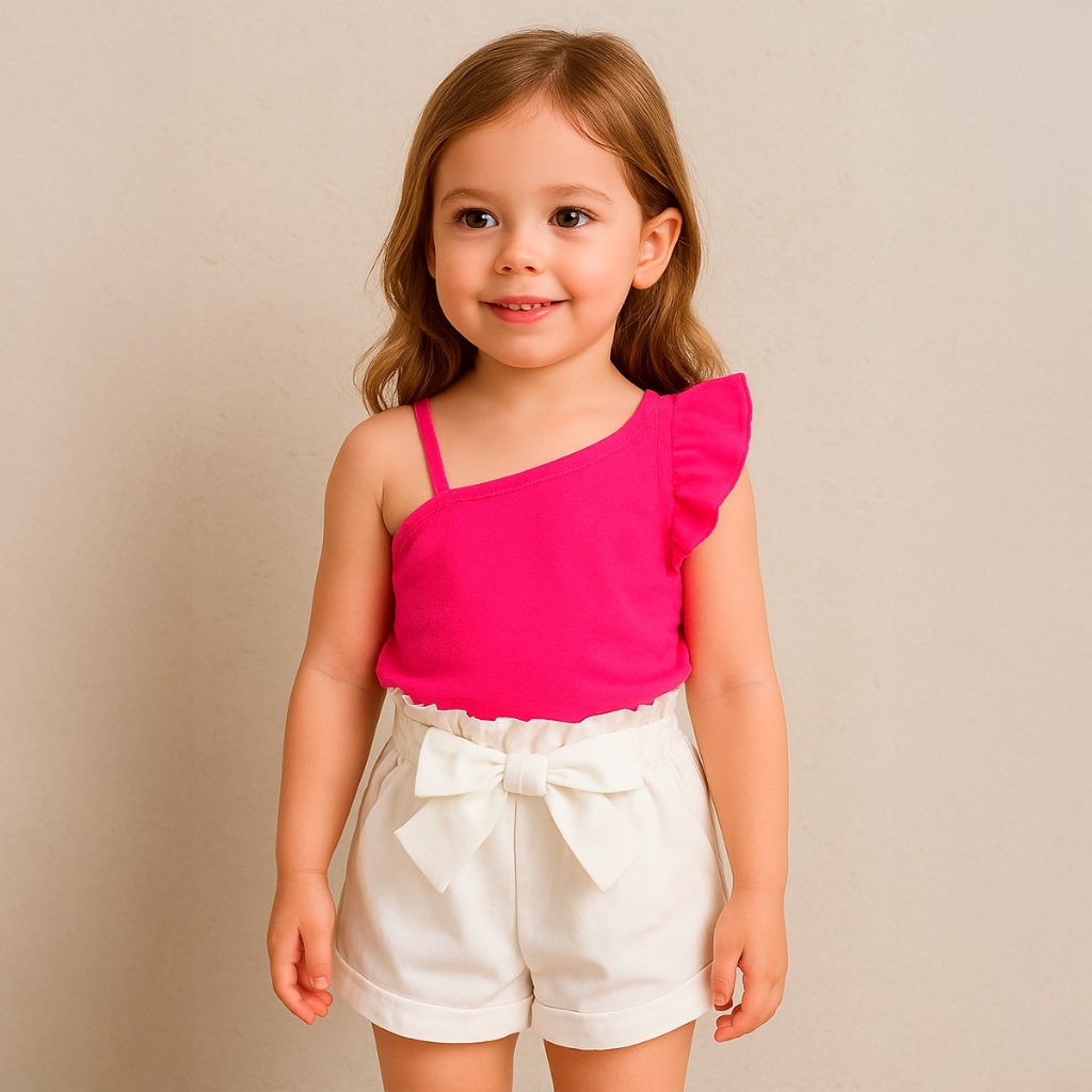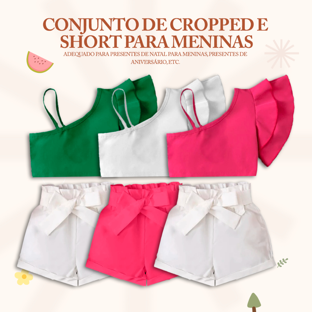 1 ano a 14 anos - Roupa Infantil de Menina - Conjunto Off White Infantil - Conjunto Infantil e Juvenil Menina
