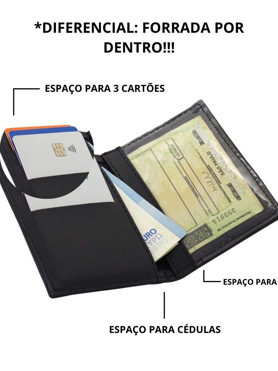 Carteira Masculina Pequena Slim, Porta Cartão, CNH.