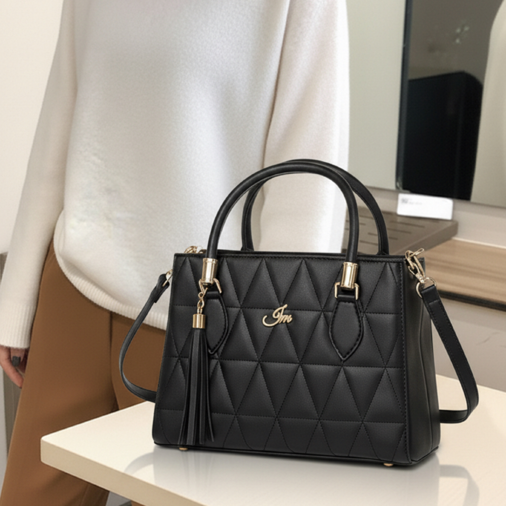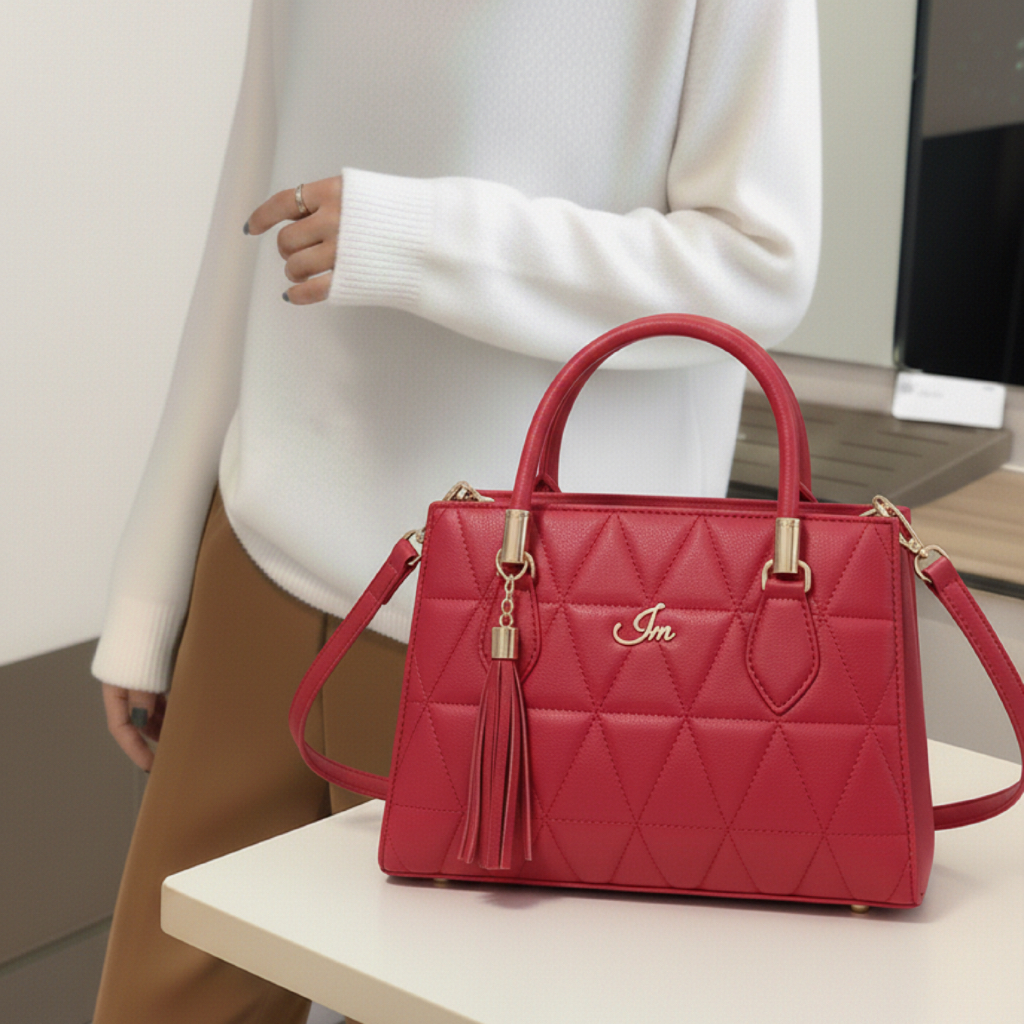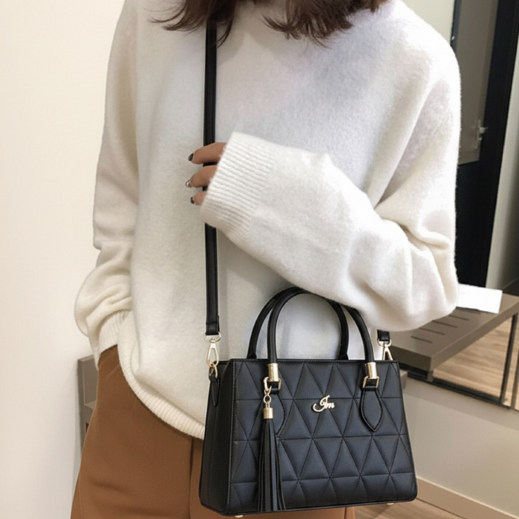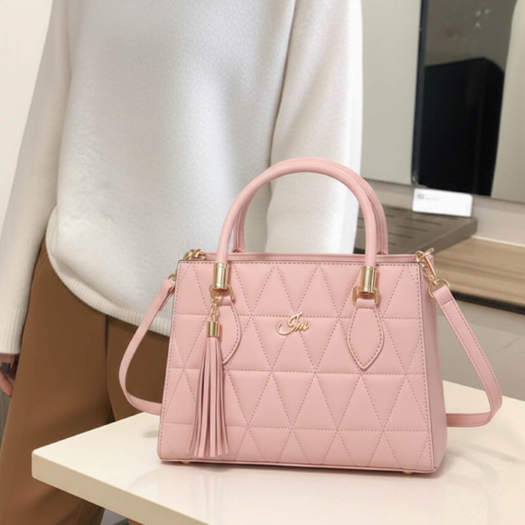 Bolsa Feminina Media Triangle Elegante com Alça de Ombro Transversal e Lateral Couro Pu Premium