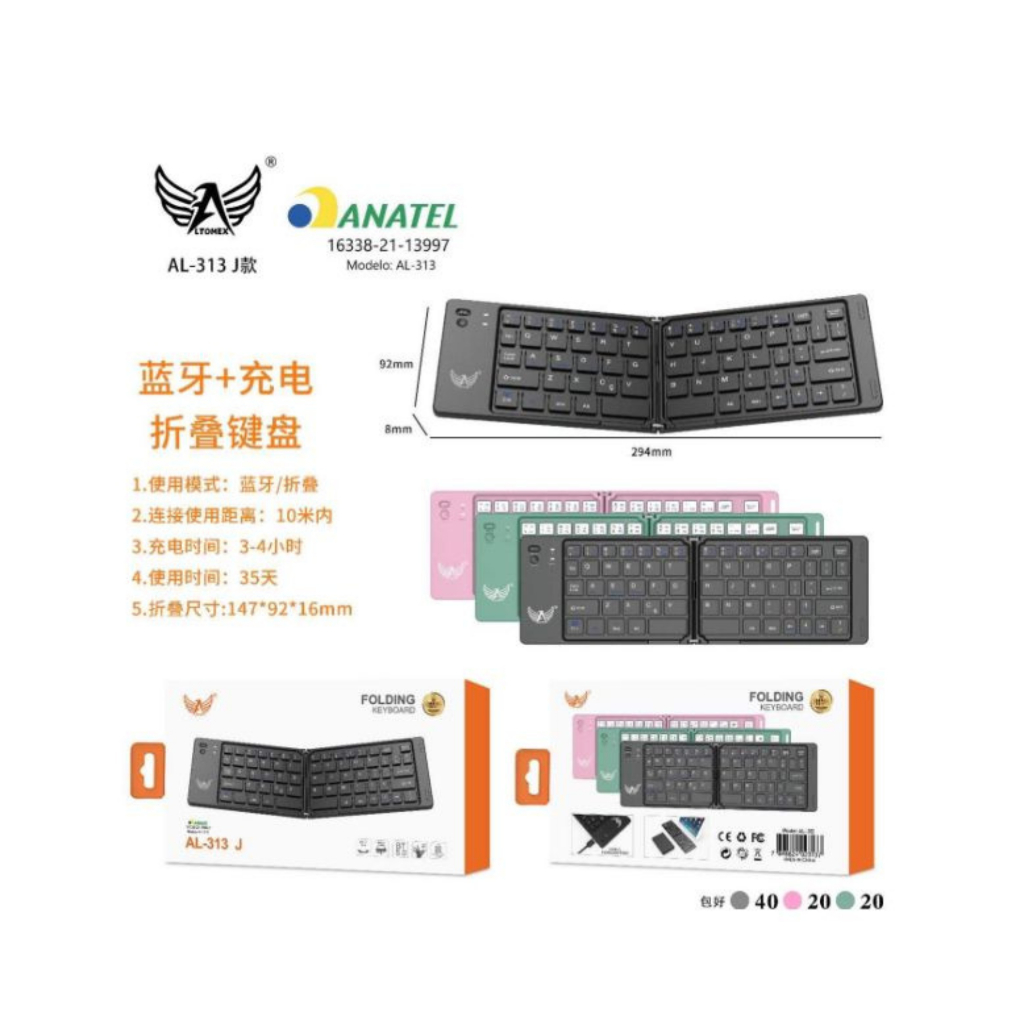 Teclado Sem Fio Dobrável Recarregável Via Bluetooth compatível com celular iphone tablet ipad pc nootbook