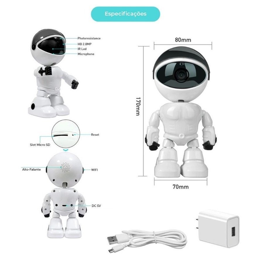 Câmera de Segurança Robô com Resolução Full HD 1080P Visão Noturna 360° SC-B11