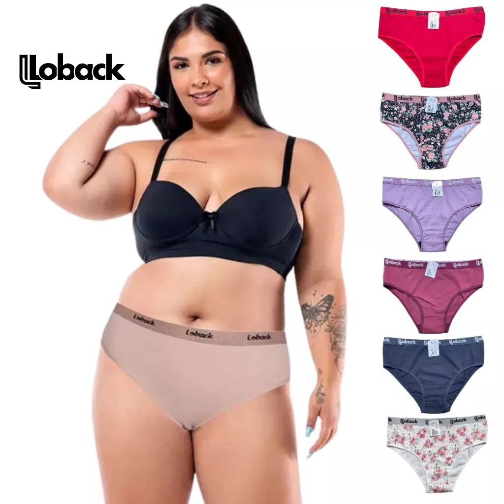 Kit 5 Calcinha Plus size Cintura Alta 100 % Algodão/Cotton Ref 301