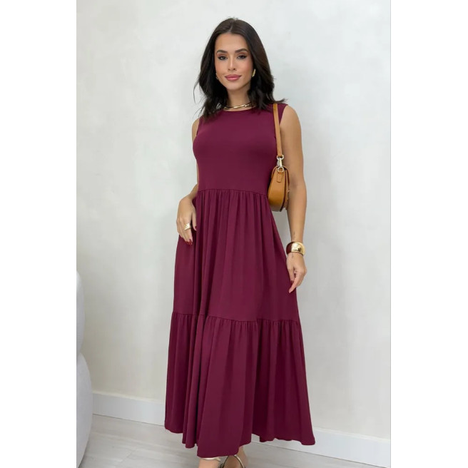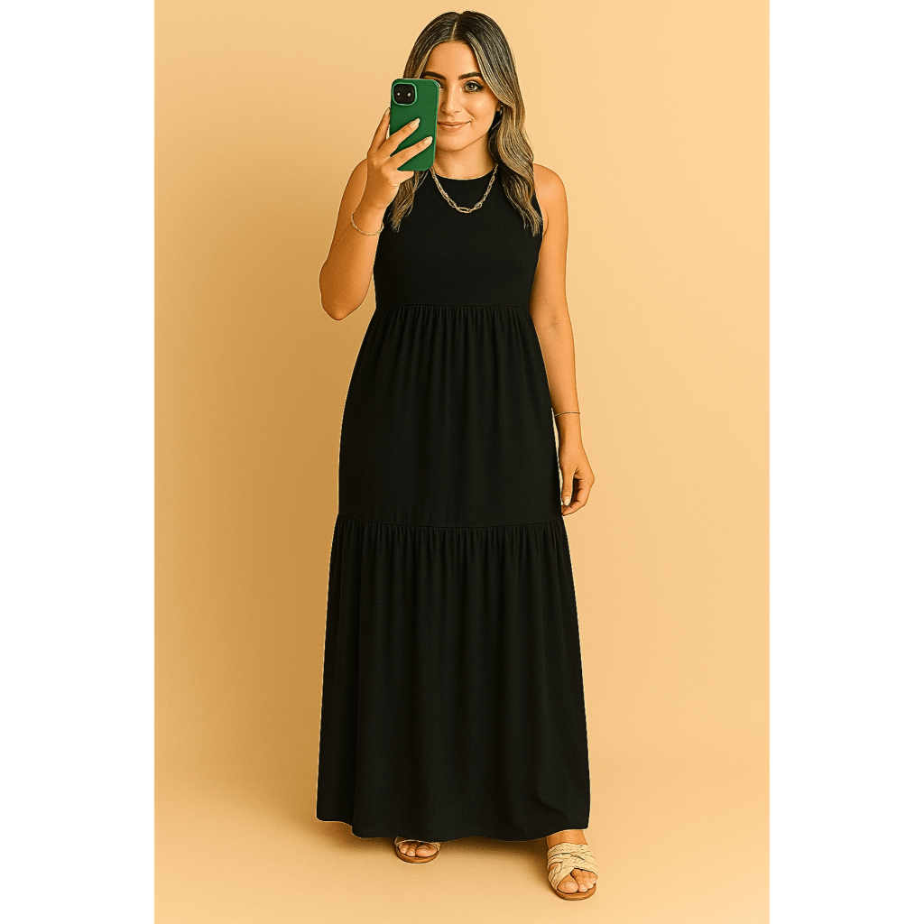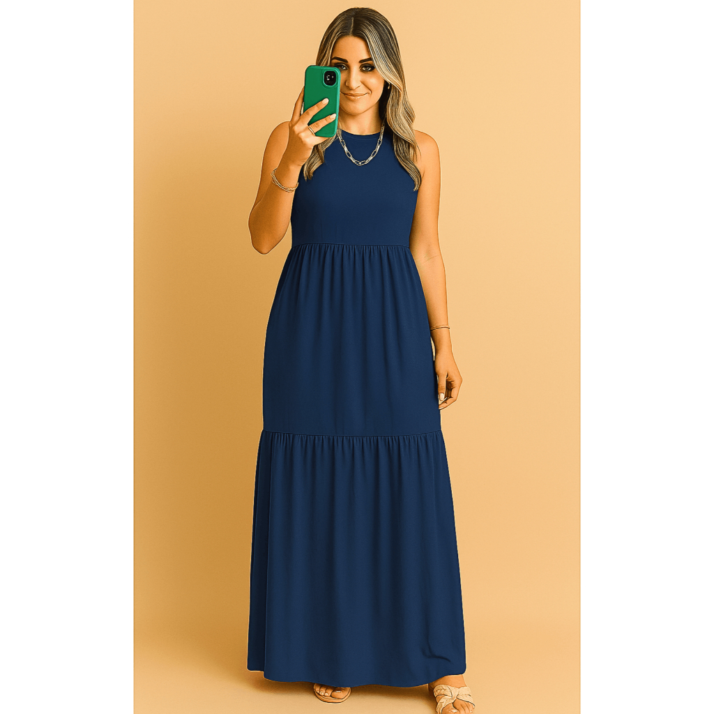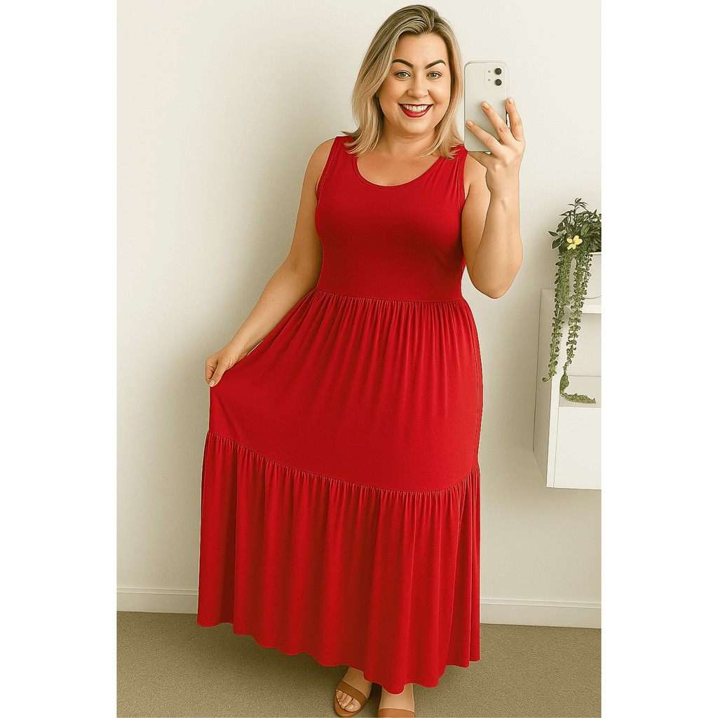 Vestido Feminino Lia Babado Slim Plus Size 2 Marias longo Malha Viscolycra Conforto Leve Soltinho Moda Evangélica Verão